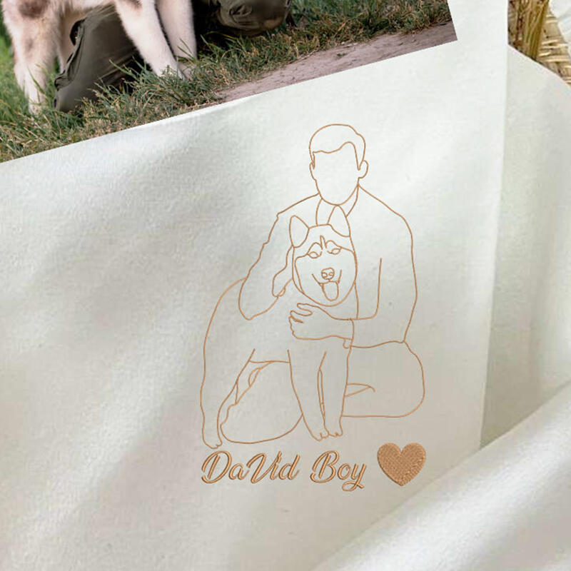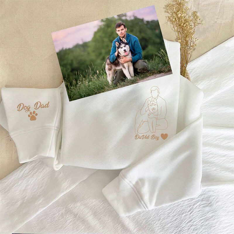 Personalized Sweatshirt Custom Embroidered Photo Line Drawing of Pet and People Gift for Pet Loving Dad