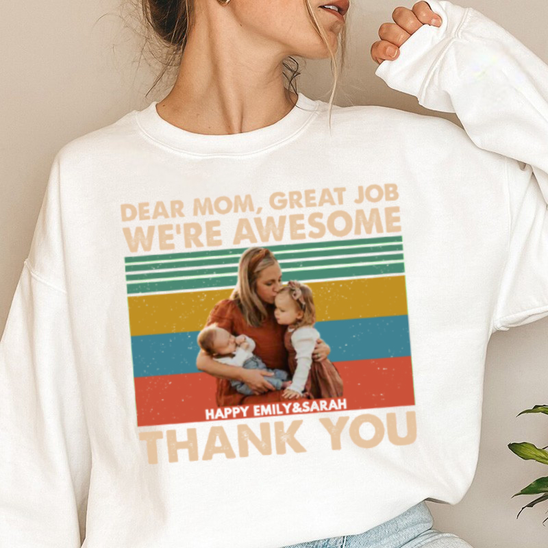 Personalized Sweatshirt Dear Mom Great Job We're Awesome Thank You Warm Design for Mother's Day Gift