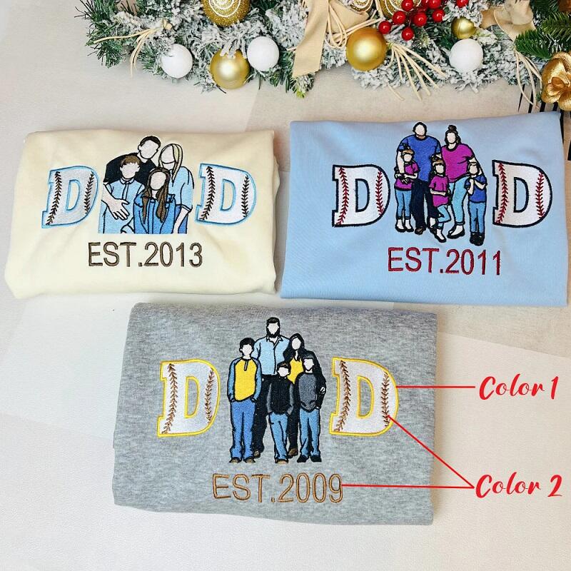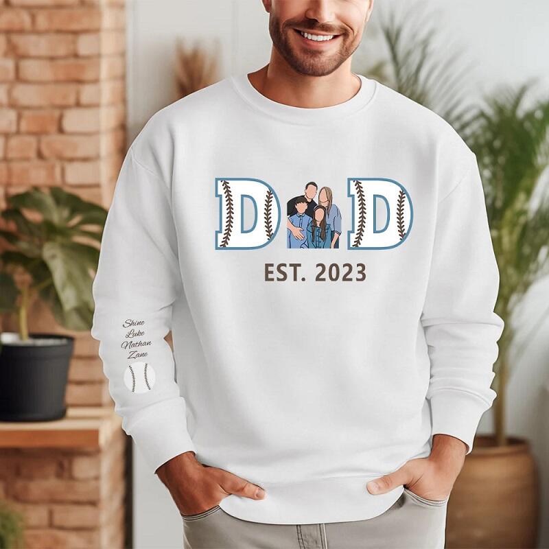 Personalized Sweatshirt Embroidered Baseball Dad Custom Photo with Kid's Names Design Gift for Father