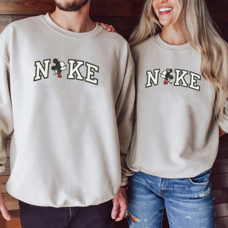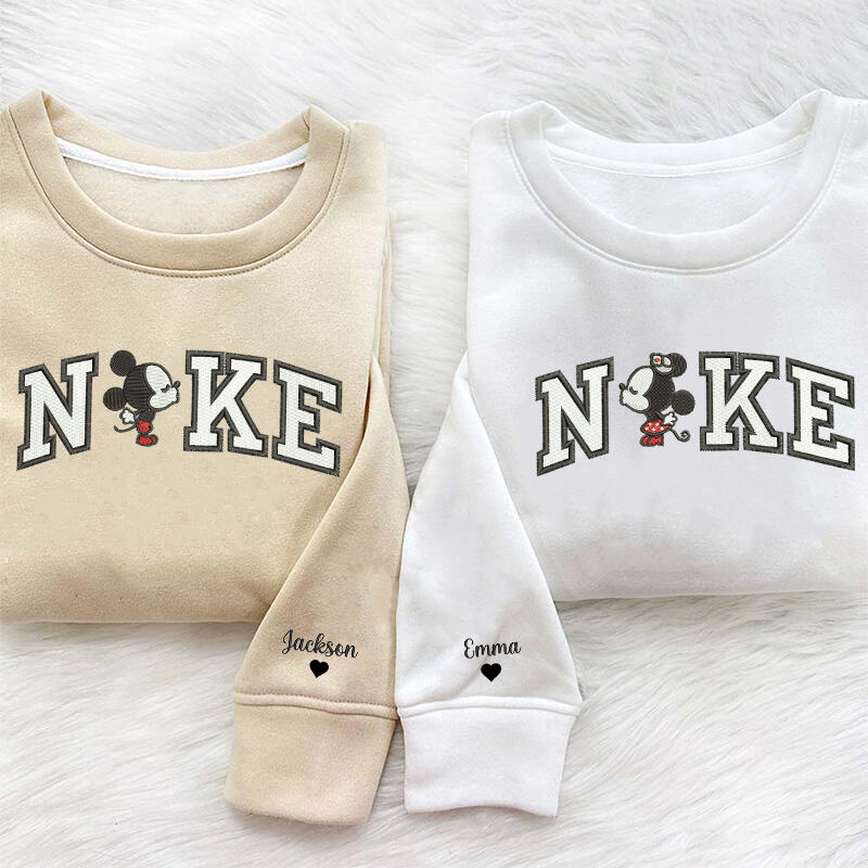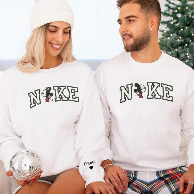 Personalized Sweatshirt Embroidered Cartoon Mouse Couple Kissing Design Valentine's Day Gift for Lovers