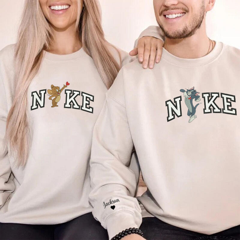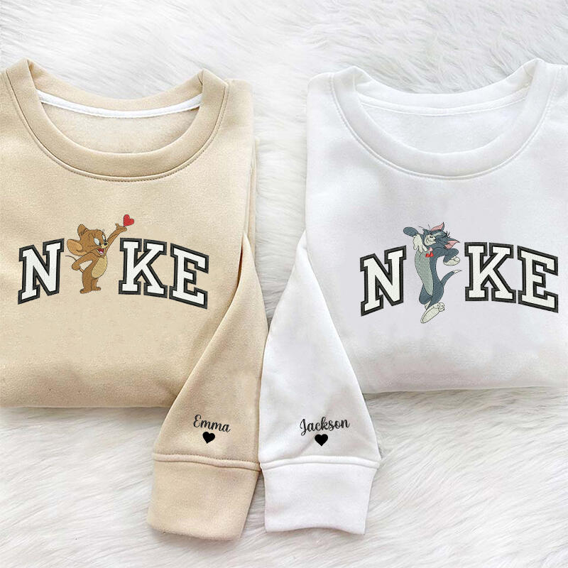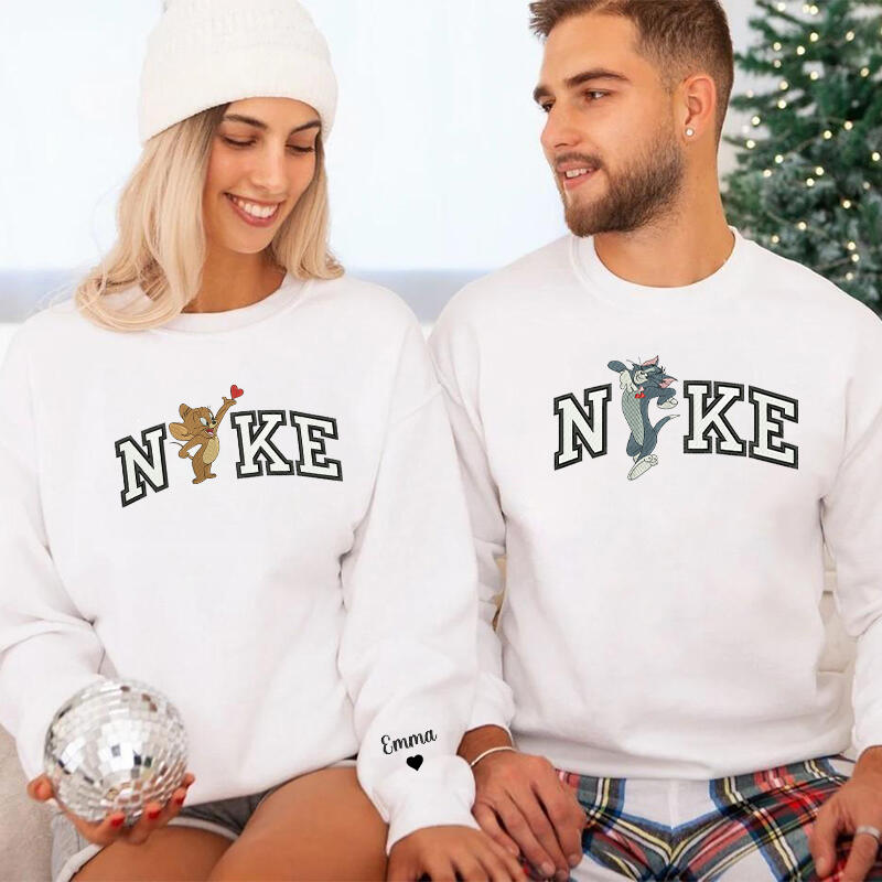 Personalized Sweatshirt Embroidered Cartoon Tom and Jerry Design Great Valentine's Day Gift for Couples