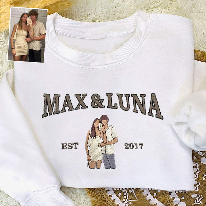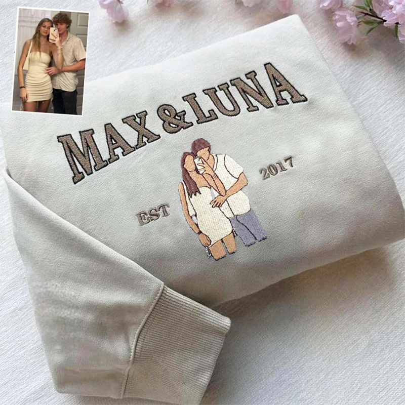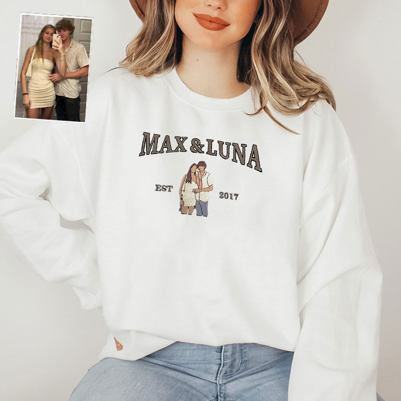Personalized Sweatshirt Embroidered Custom Couple Photo and Names Perfect Valentine's Day Gift