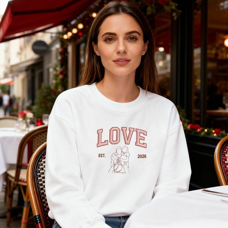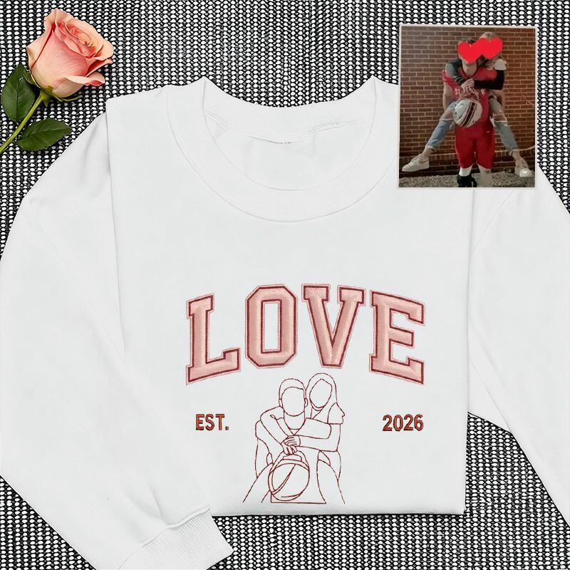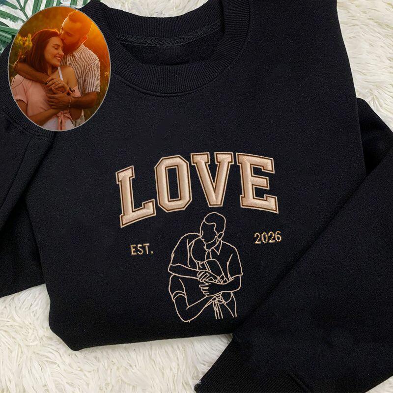 Personalized Sweatshirt Embroidered Custom Couple Photo Love Outline Design Perfect Valentine's Day Gift