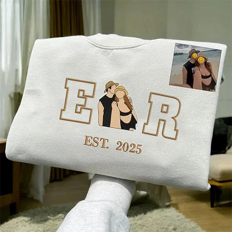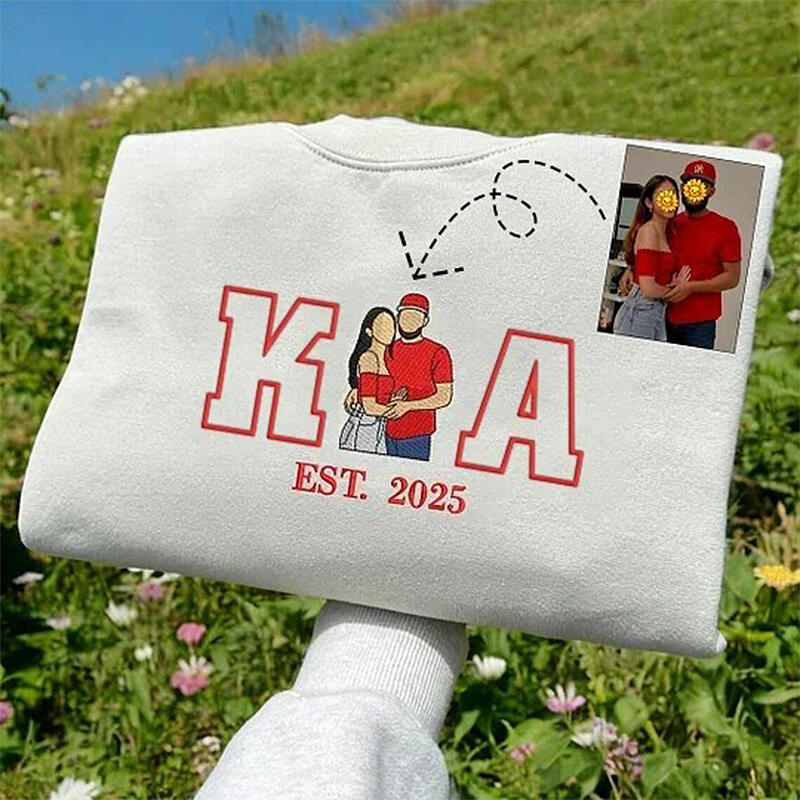 Personalized Sweatshirt Embroidered Custom Couple Photo with Initials Design Perfect Gift for Lovers
