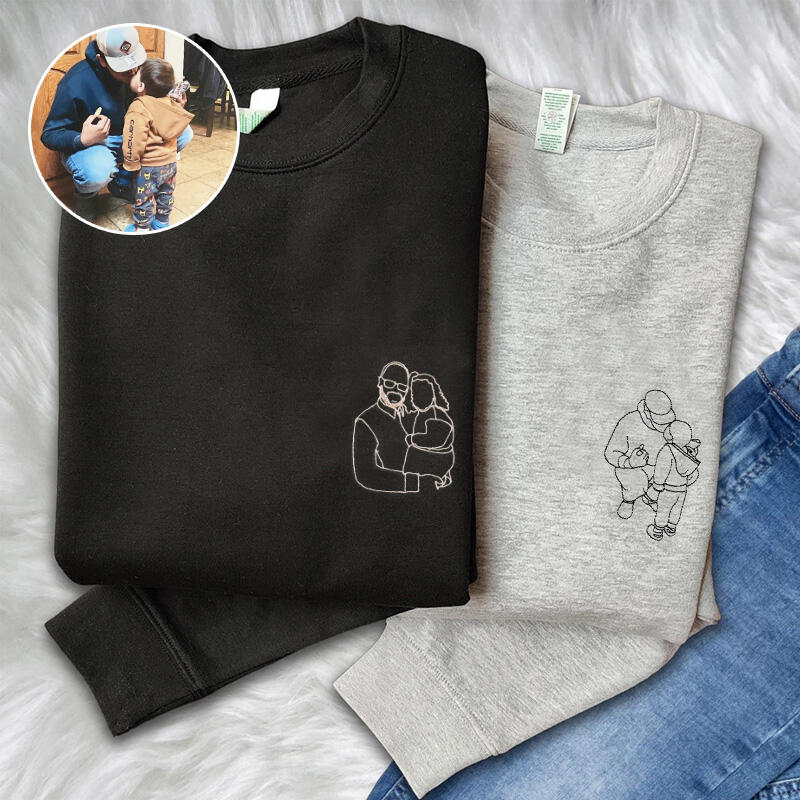 Personalized Sweatshirt Embroidered Custom Dad and Kids Photo Unique Design Perfect Father's Day Gift