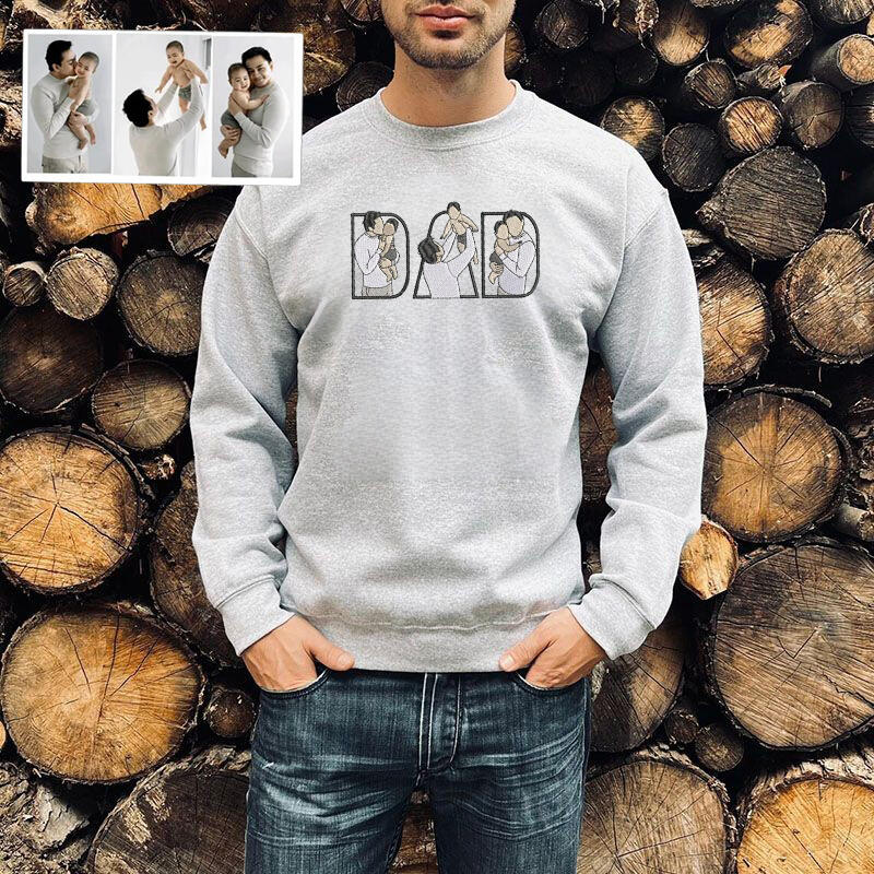 Personalized Sweatshirt Embroidered Custom Dad and Kids Photos Design Perfect Gift for Father's Day