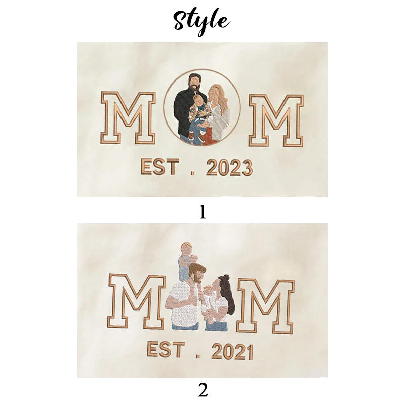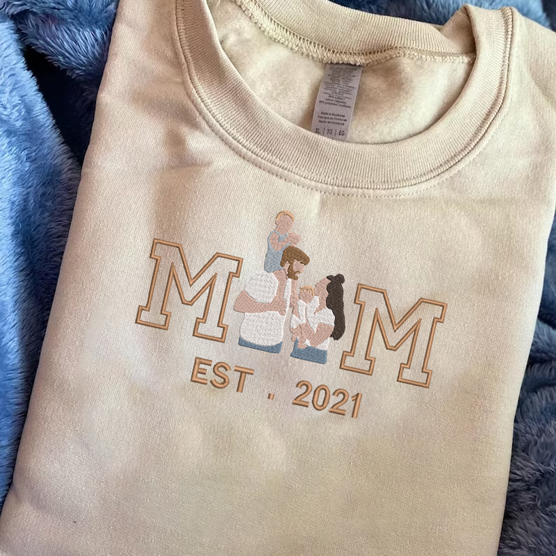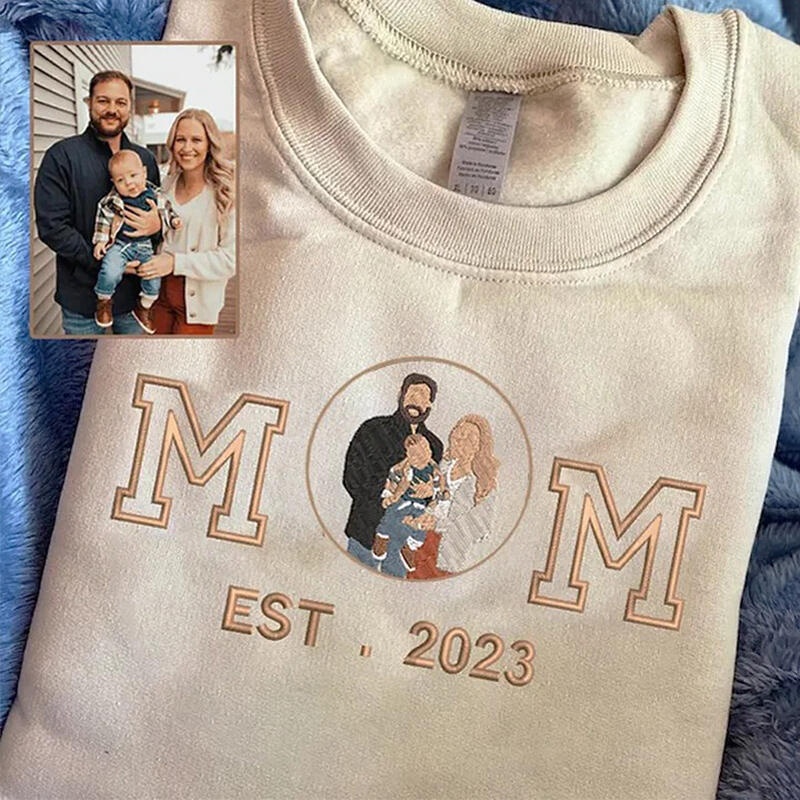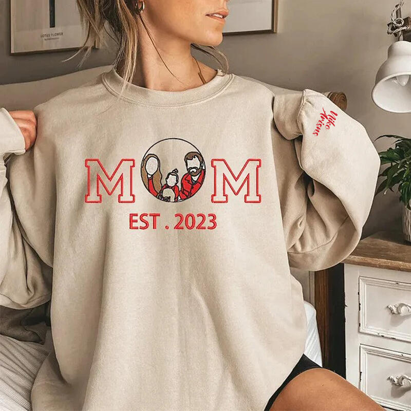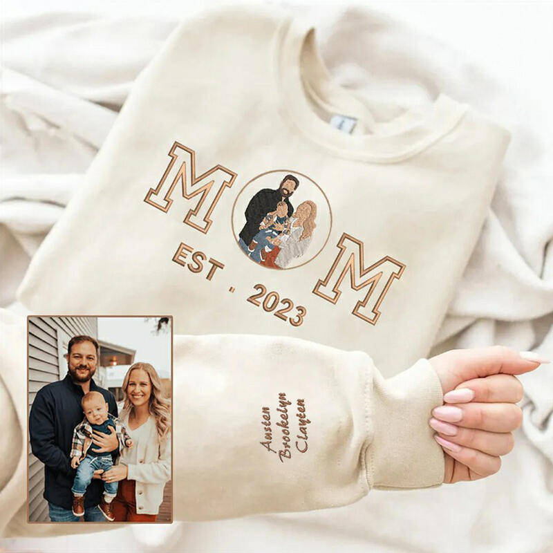 Personalized Sweatshirt Embroidered Custom Family Photo with Mom Design Great Mother's Day Gift