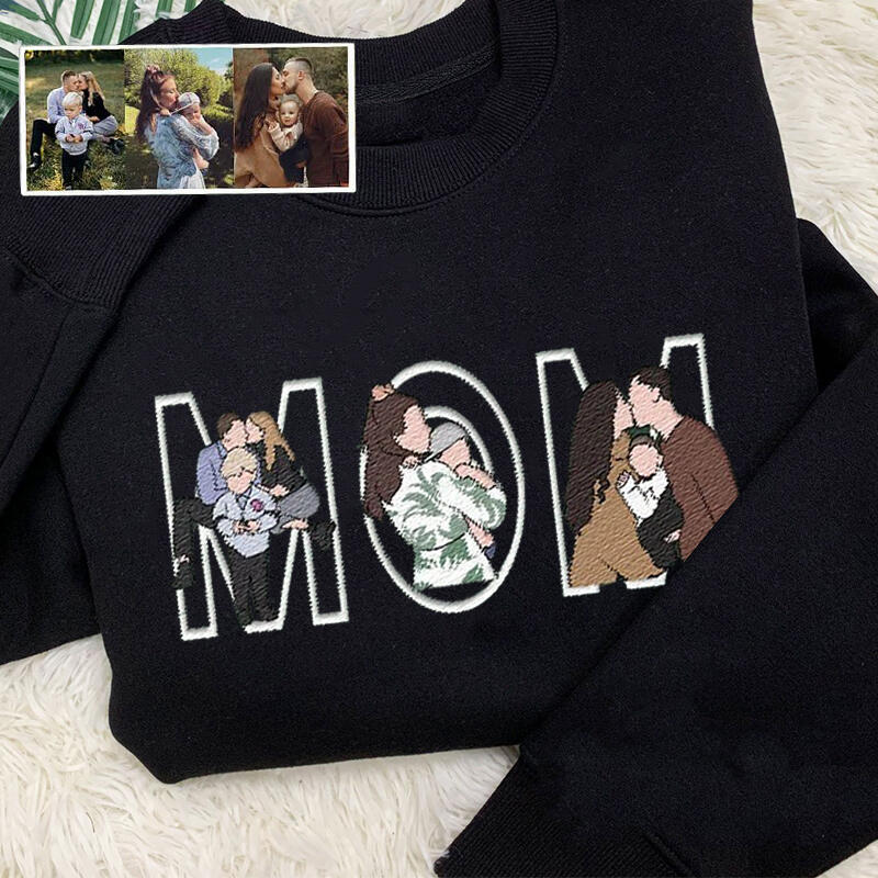 Personalized Sweatshirt Embroidered Custom Family Photos Design Attractive Gift for Mother's Day