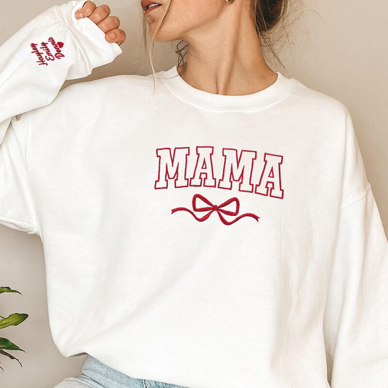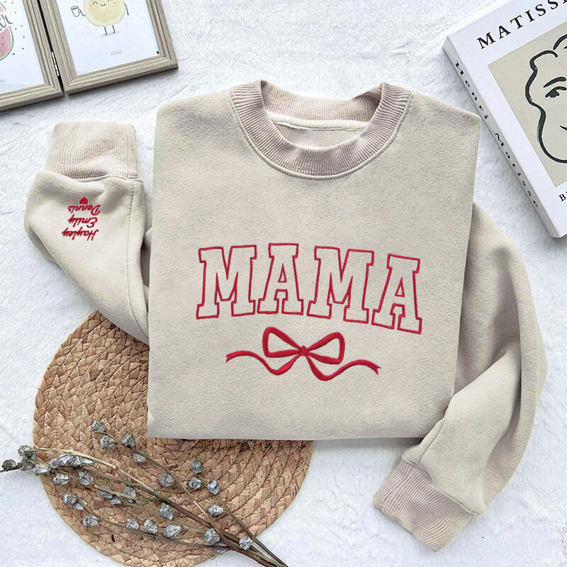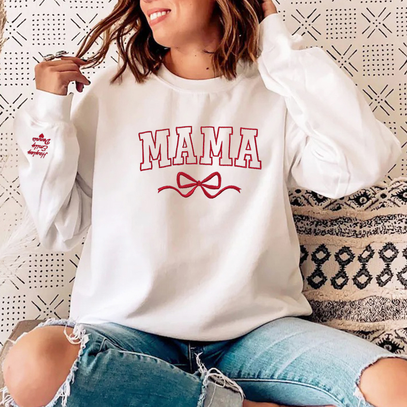 Personalized Sweatshirt Embroidered Custom Mama Nickname with Bow Design Exquisite Mother's Day Gift