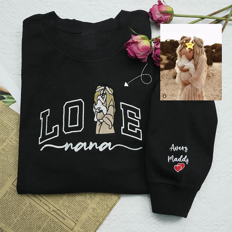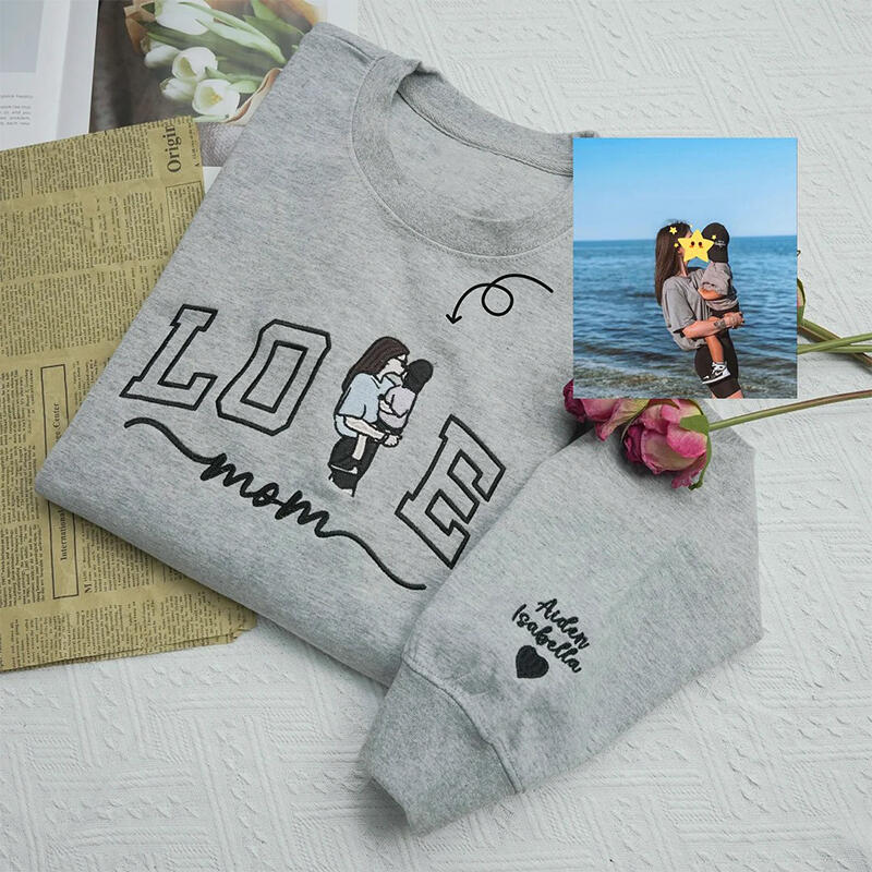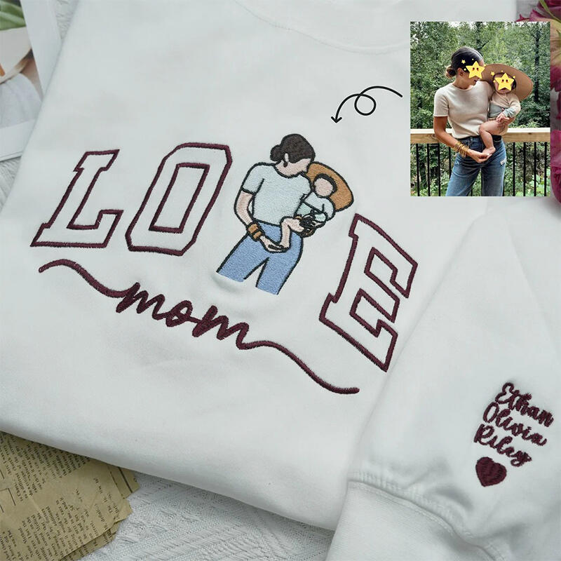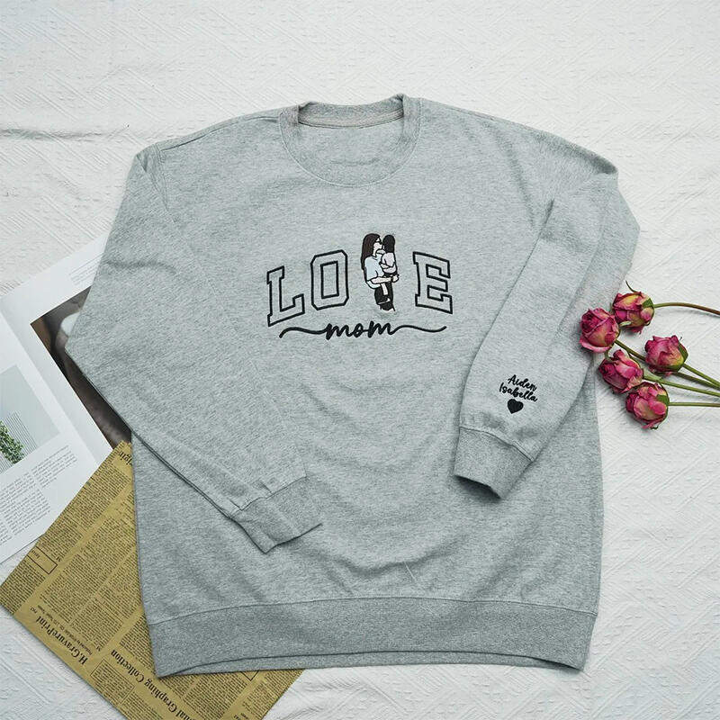 Personalized Sweatshirt Embroidered Custom Mom and Kids Photo Love Design Perfect Mother's Day Gift
