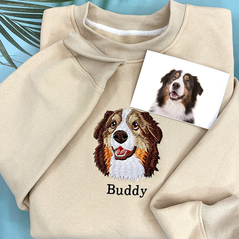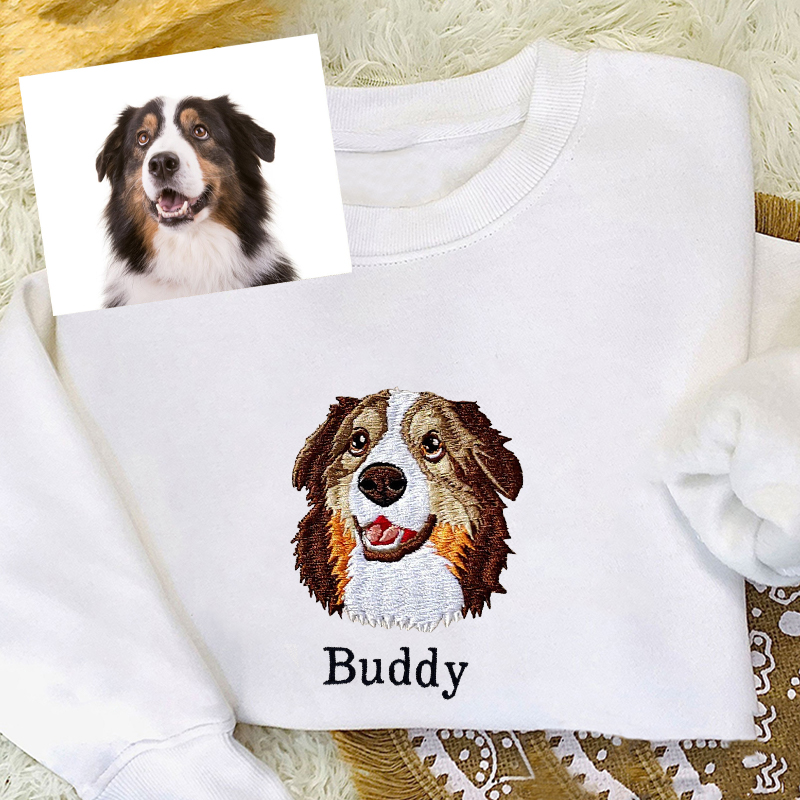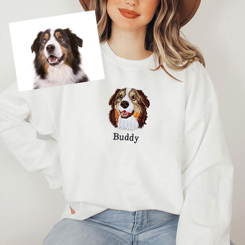 Personalized Sweatshirt Embroidered Custom Pet Head Color Photo Design Attractive Gift for Pet Lovers
