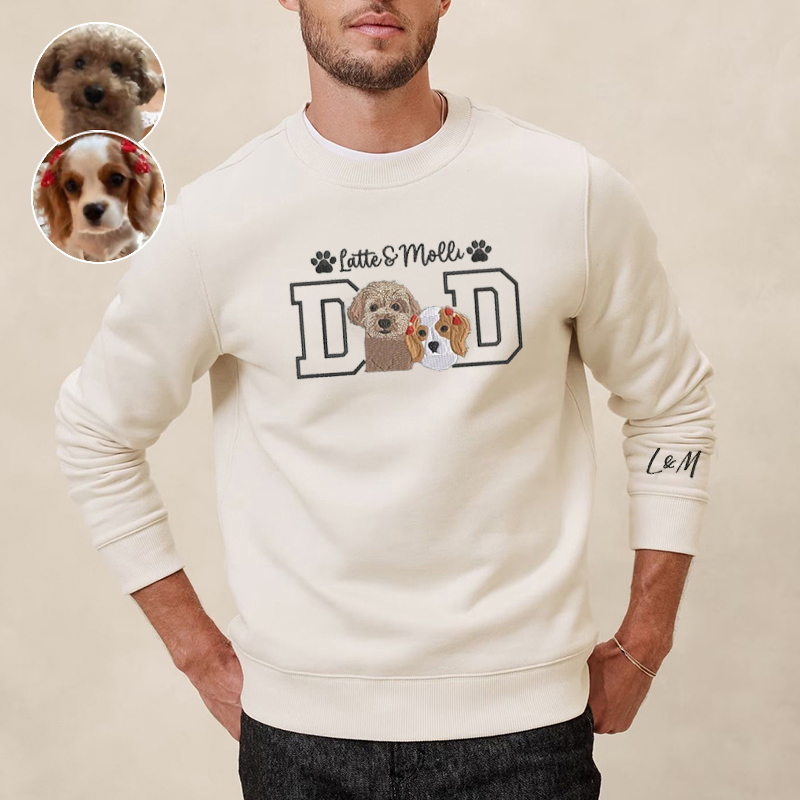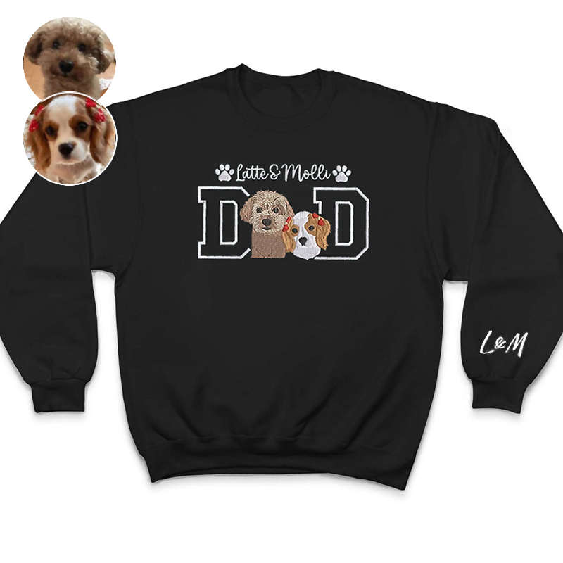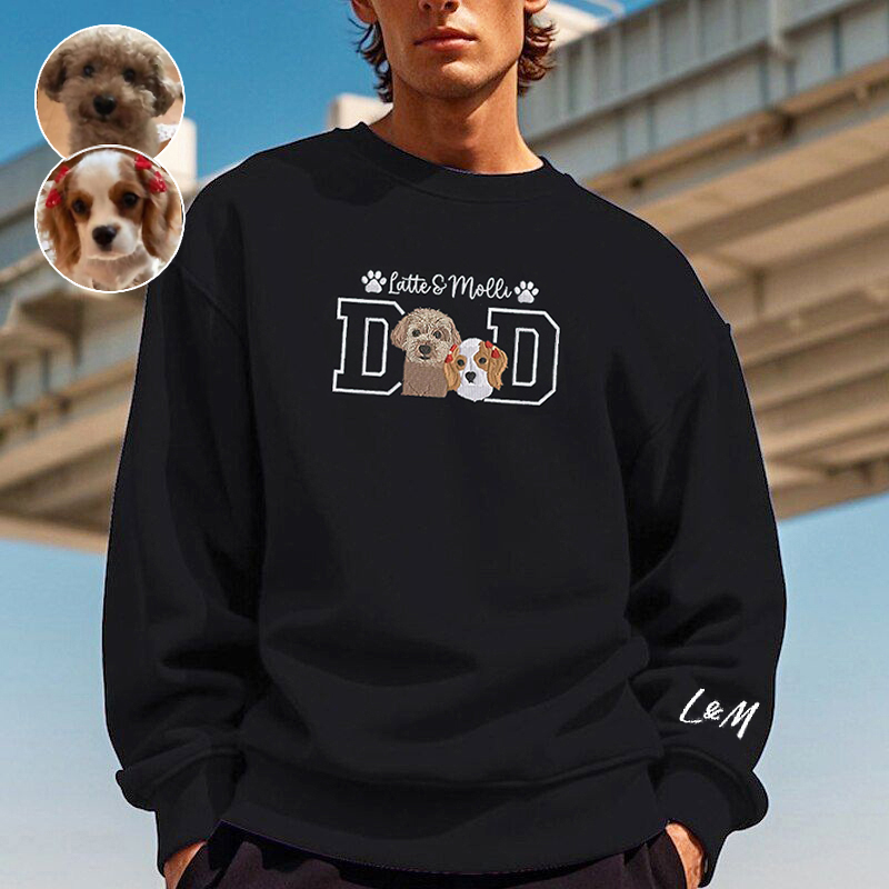 Personalized Sweatshirt Embroidered Custom Pet Head Photos Dad Design Adorable Gift for Father's Day
