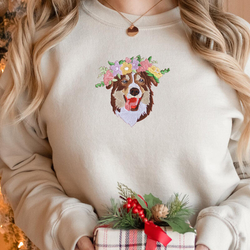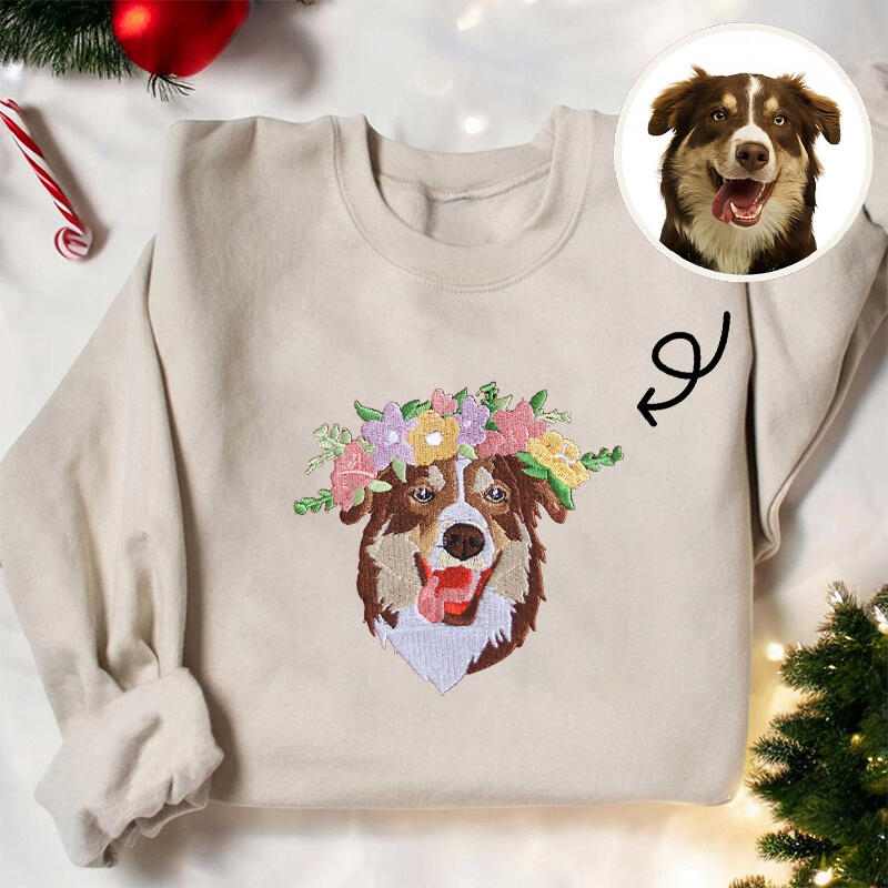 Personalized Sweatshirt Embroidered Custom Pet Photo Pretty Garland Design Exquisite Gift for Pet Lovers