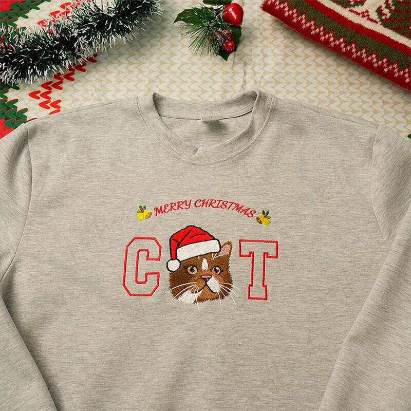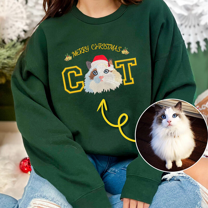 Personalized Sweatshirt Embroidered Custom Pet Photo Santa Hat Design Perfect Christmas Gift for Pet Lovers