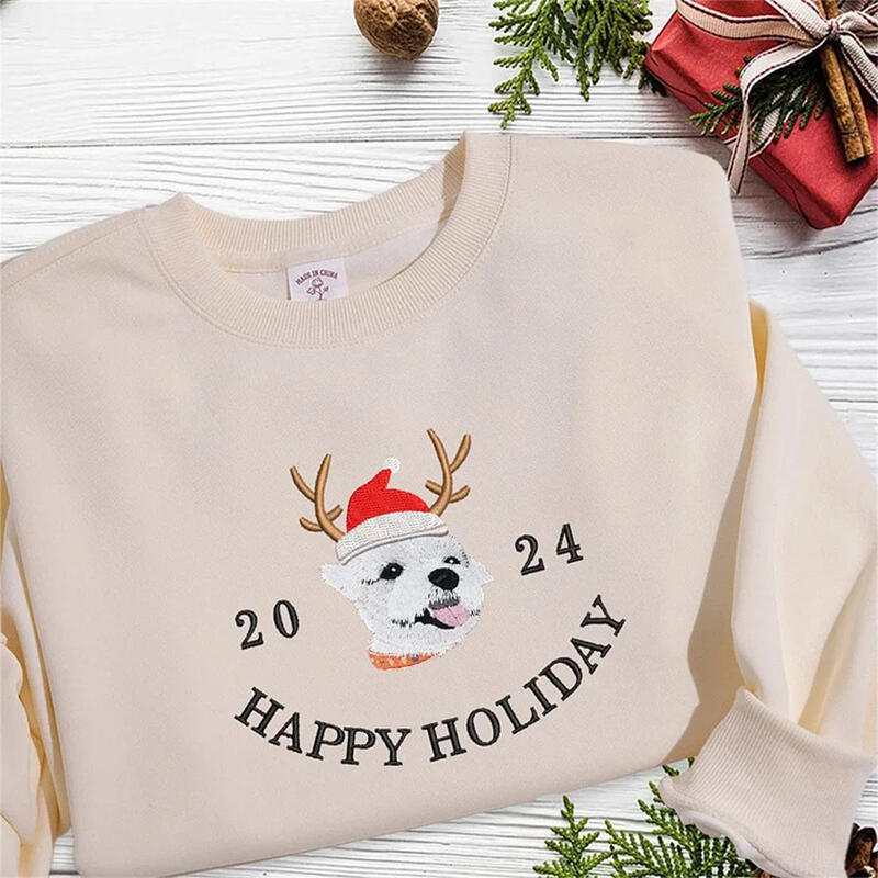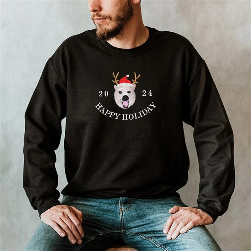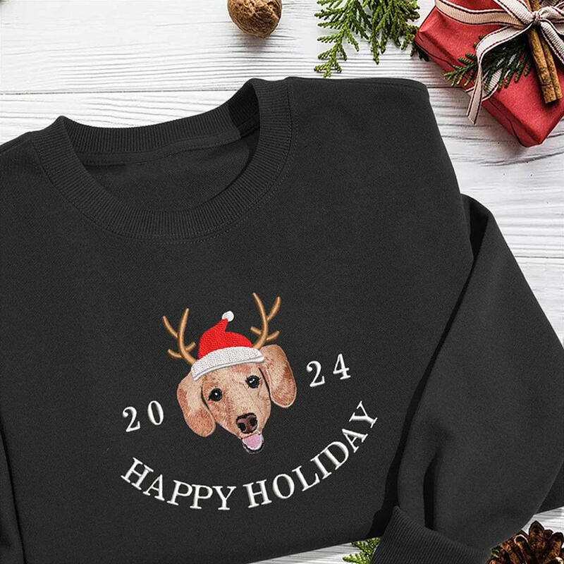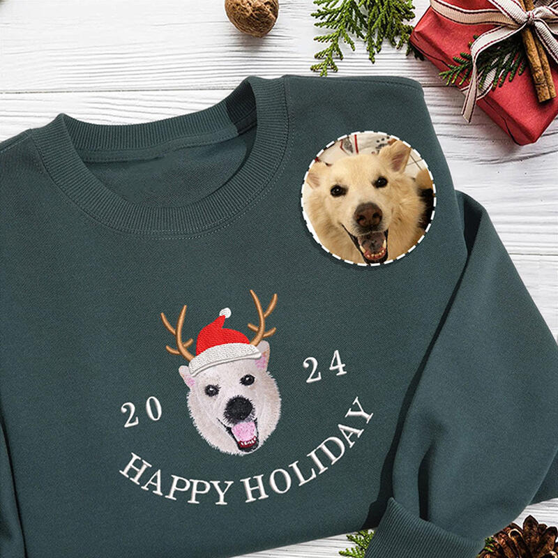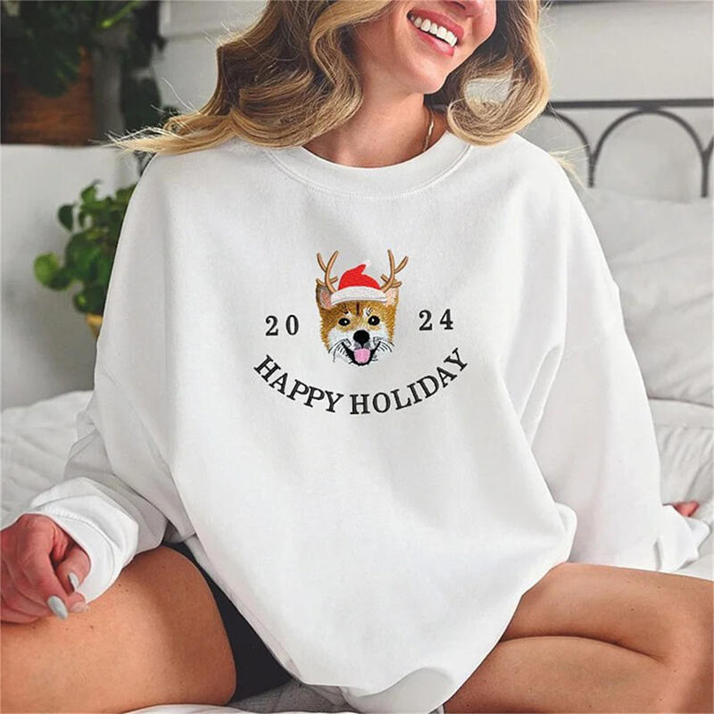 Personalized Sweatshirt Embroidered Custom Pet Photo Santa Hat Happy Holiday Christmas Gift for Pet Lovers