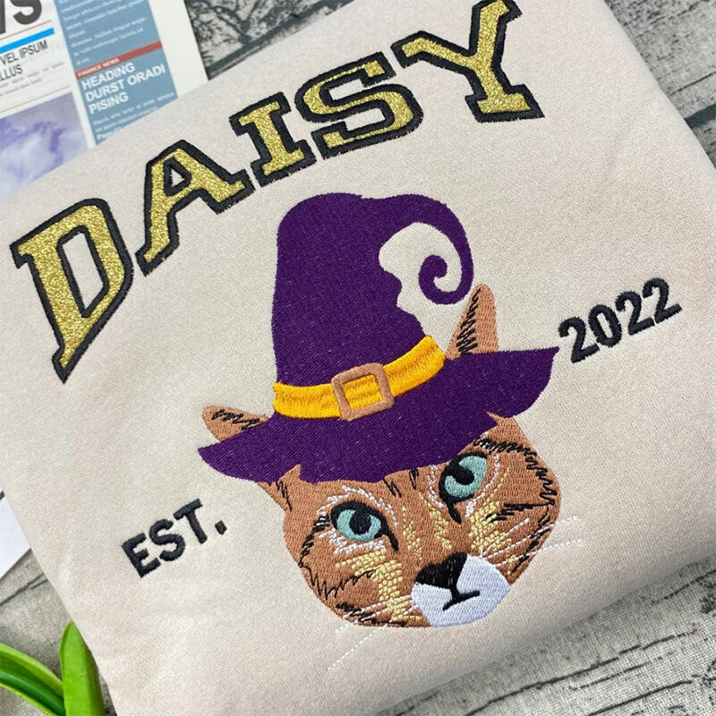 Personalized Sweatshirt Embroidered Custom Pet Photo Wizard Hat Design Perfect Gift for Pet Lovers
