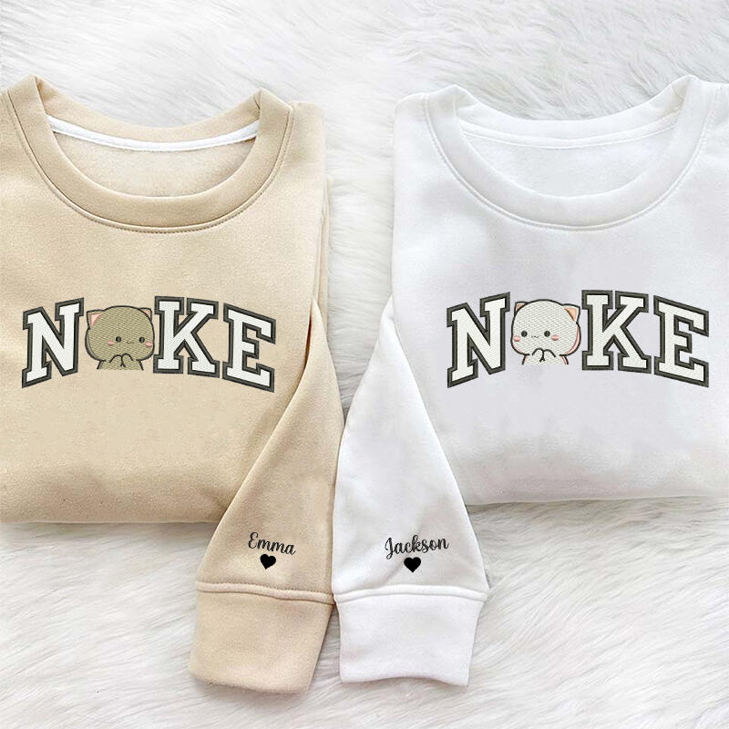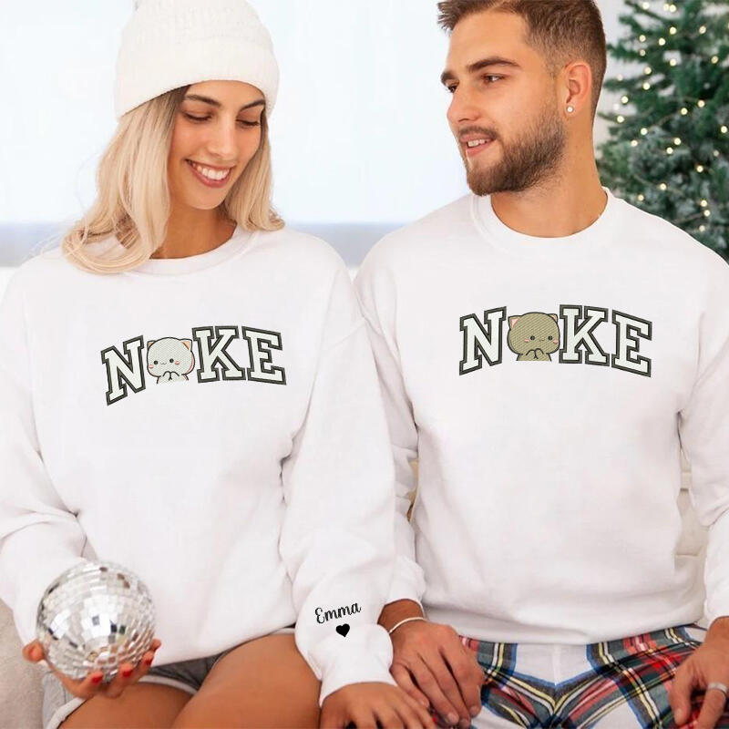 Personalized Sweatshirt Embroidered Cute Couple Kittens Perfect Valentine's Day Gift for Lovers