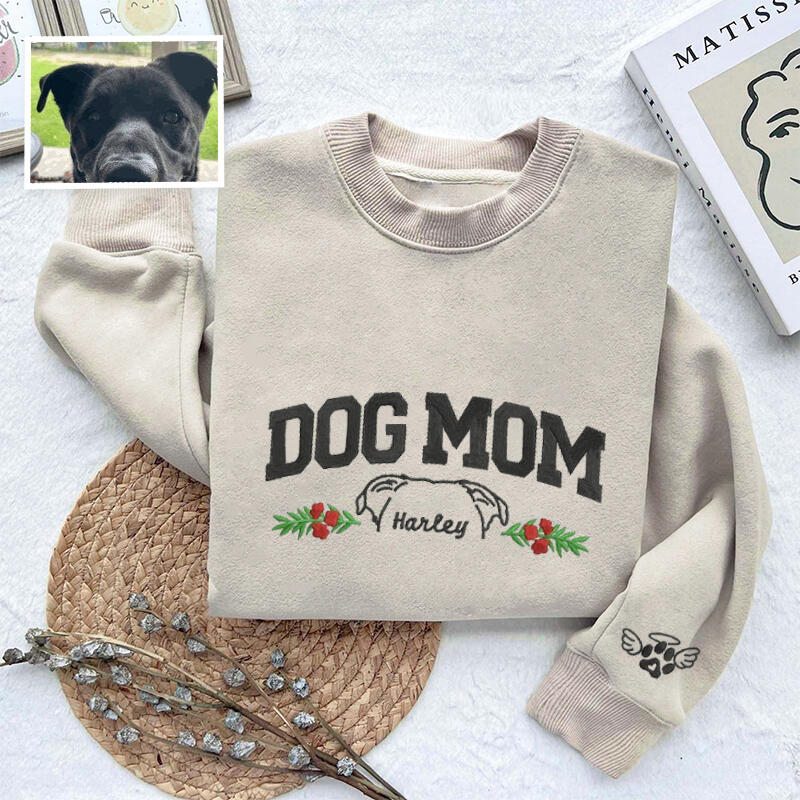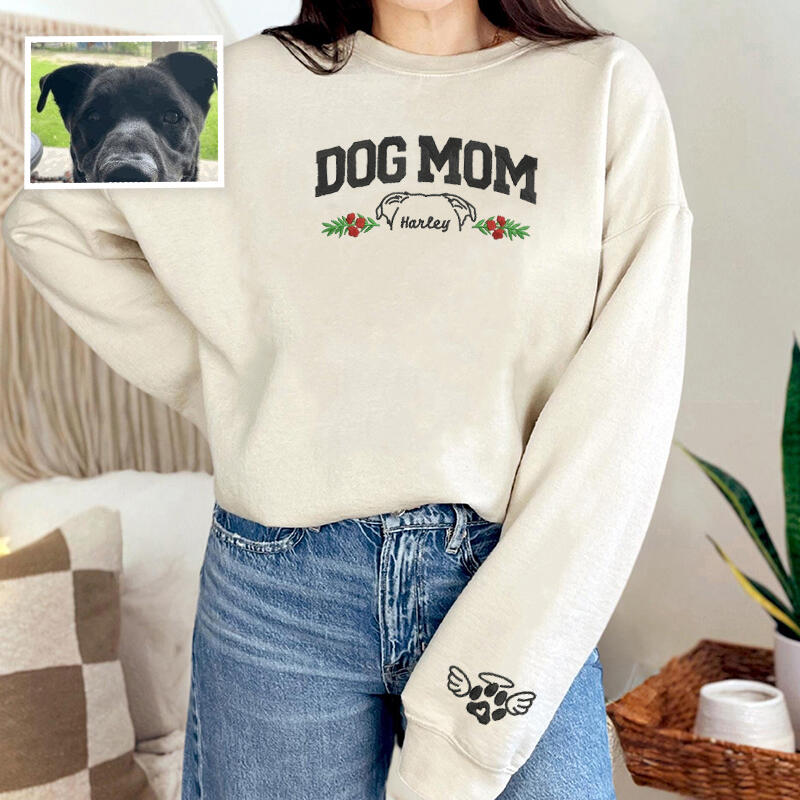 Personalized Sweatshirt Embroidered Dog Mom Custom Pet Ear Outline Design Great Gift for Pet Lover Mama