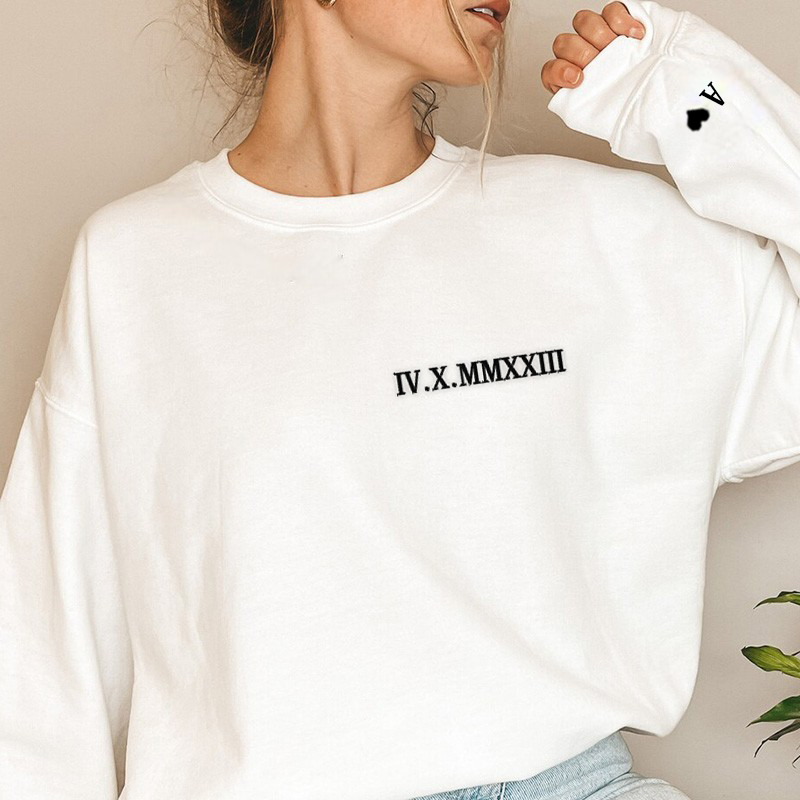 Personalized Sweatshirt Embroidered Lateral Roman Numeral Date and Initial Perfect for Couple's Anniversary