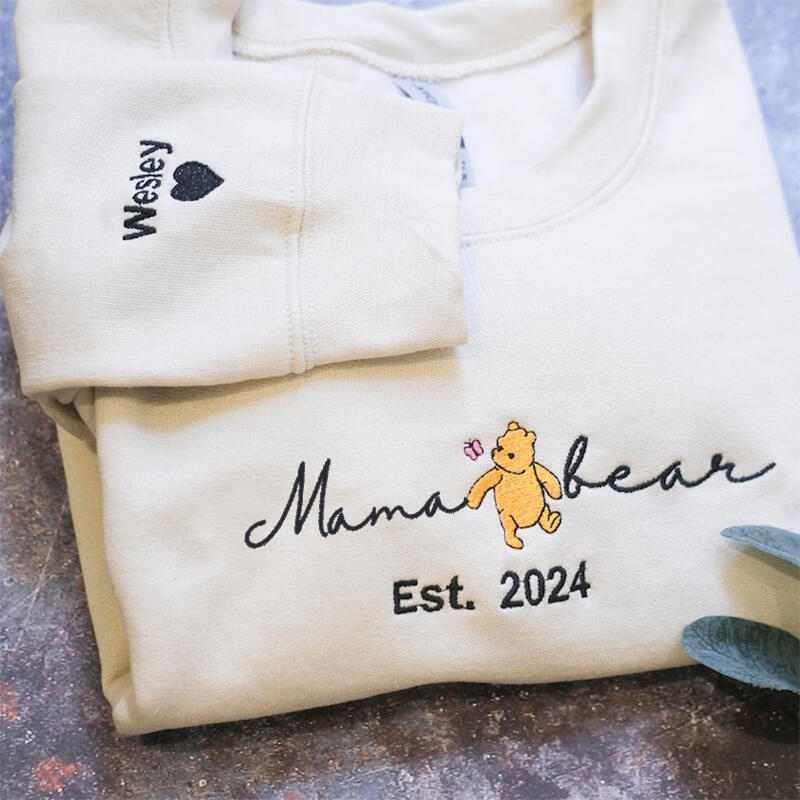 Personalized Sweatshirt Embroidered Mama Bear with Custom Names Design Warm Gift for Mother's Day