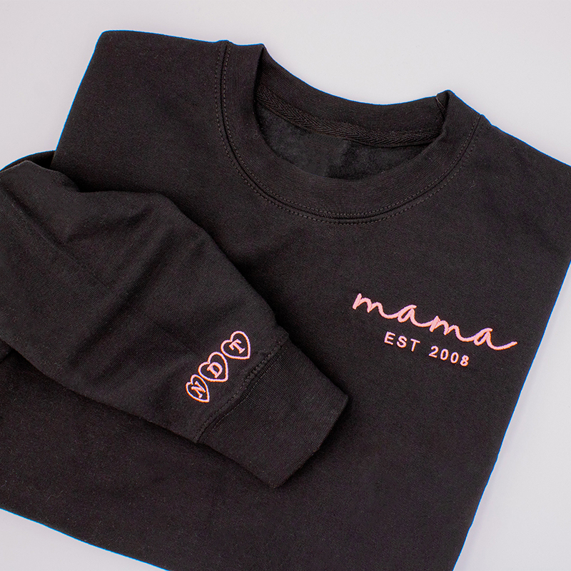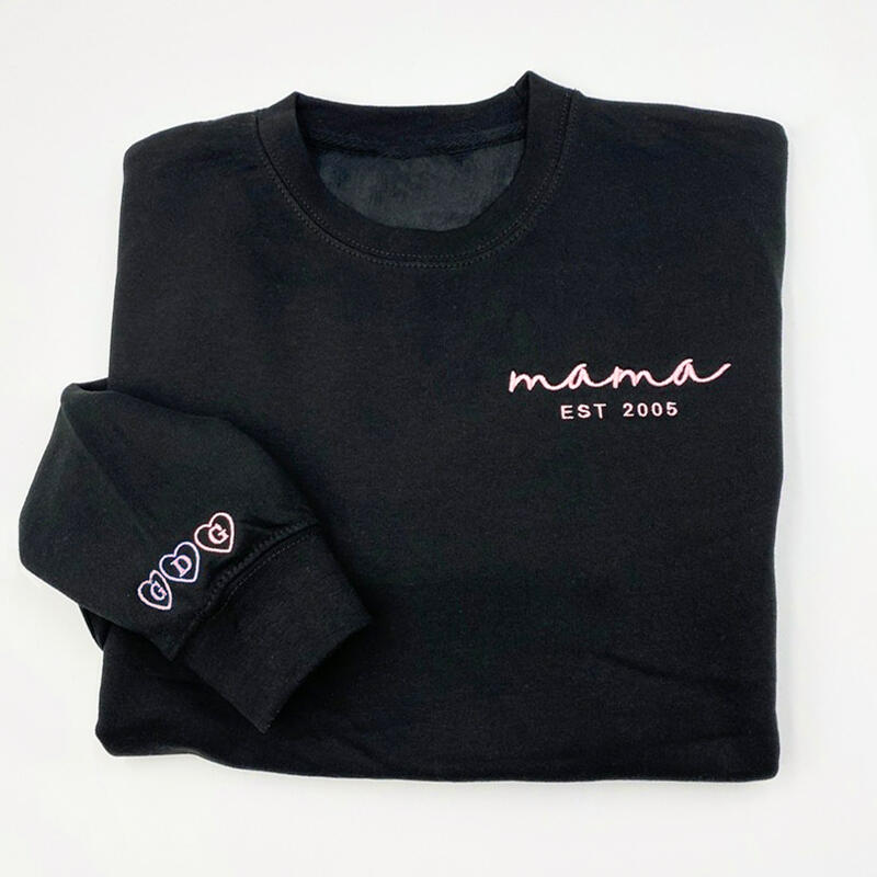 Personalized Sweatshirt Embroidered Mama with Custom Initials On The Sleeve Creative Mother's Day Gift