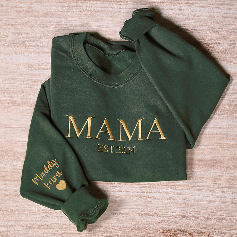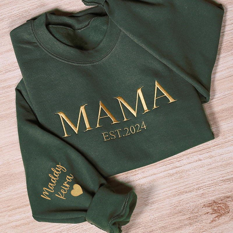 Personalized Sweatshirt Embroidered Mama with Custom Names On The Sleeve Perfect Gift for Mother's Day
