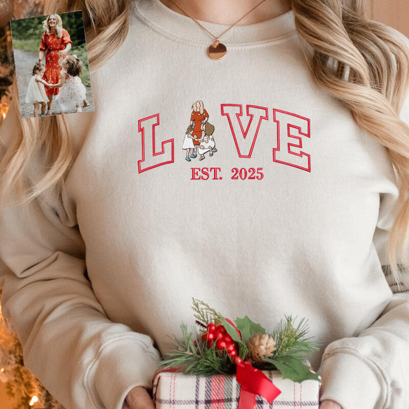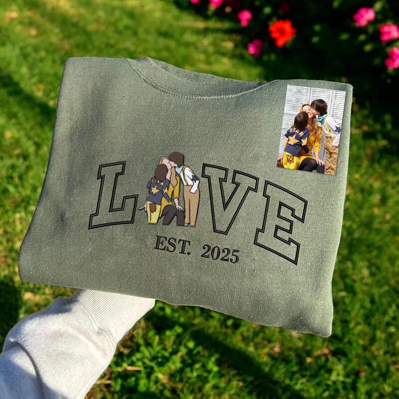 Personalized Sweatshirt Embroidered Mom and Kids Photo Love Pattern Design Great Gift for Mother's Day