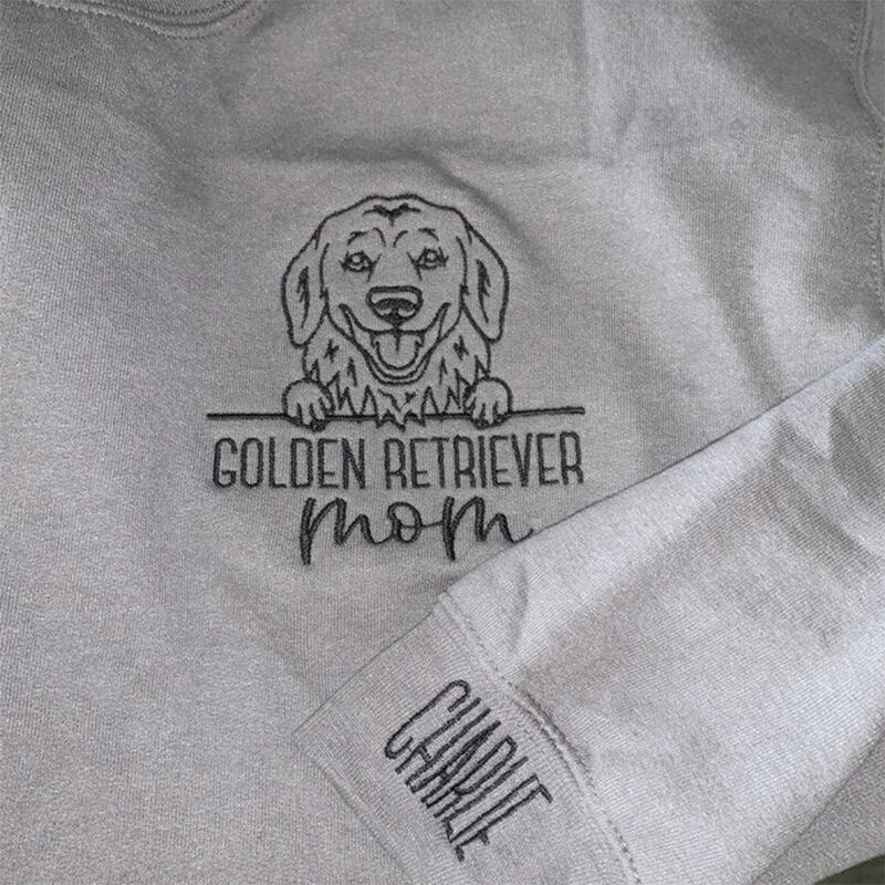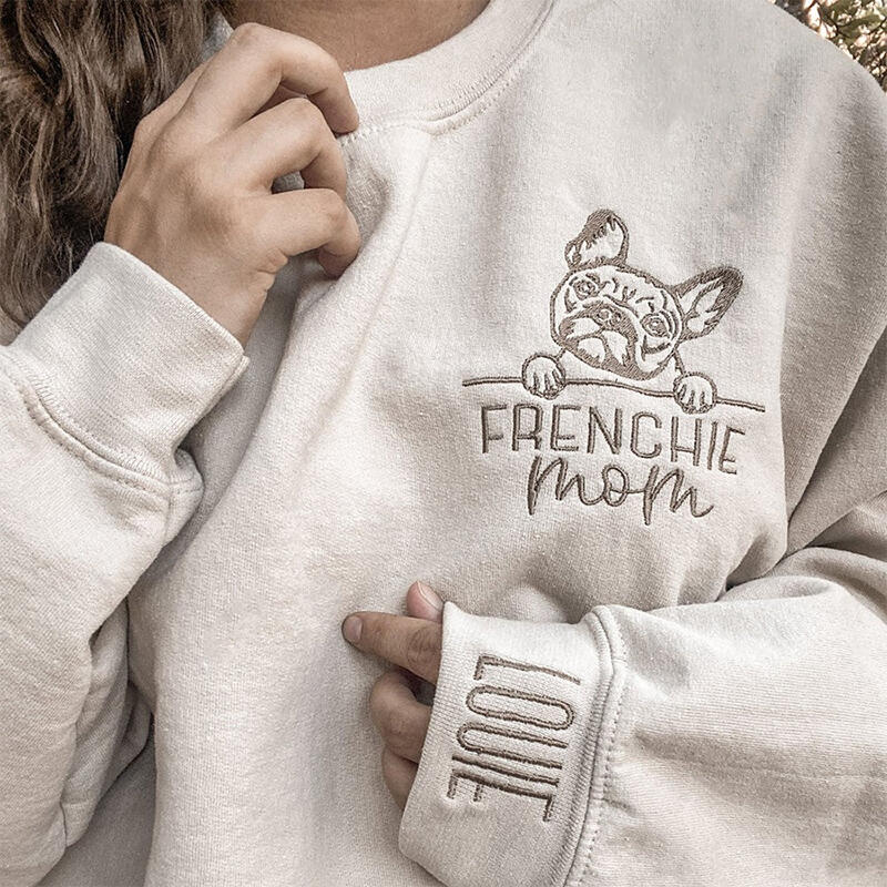 Personalized Sweatshirt Embroidered Pet's Mom with Custom Pet Head Line Photo Great Gift for Pet Lovers