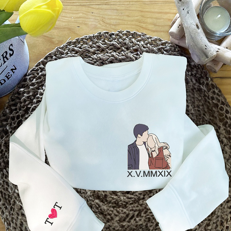 Personalized Sweatshirt Embroidered Photo with Custom Roman Numeral Date Great Gift for Couple's Anniversary