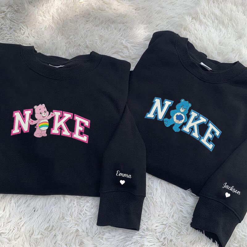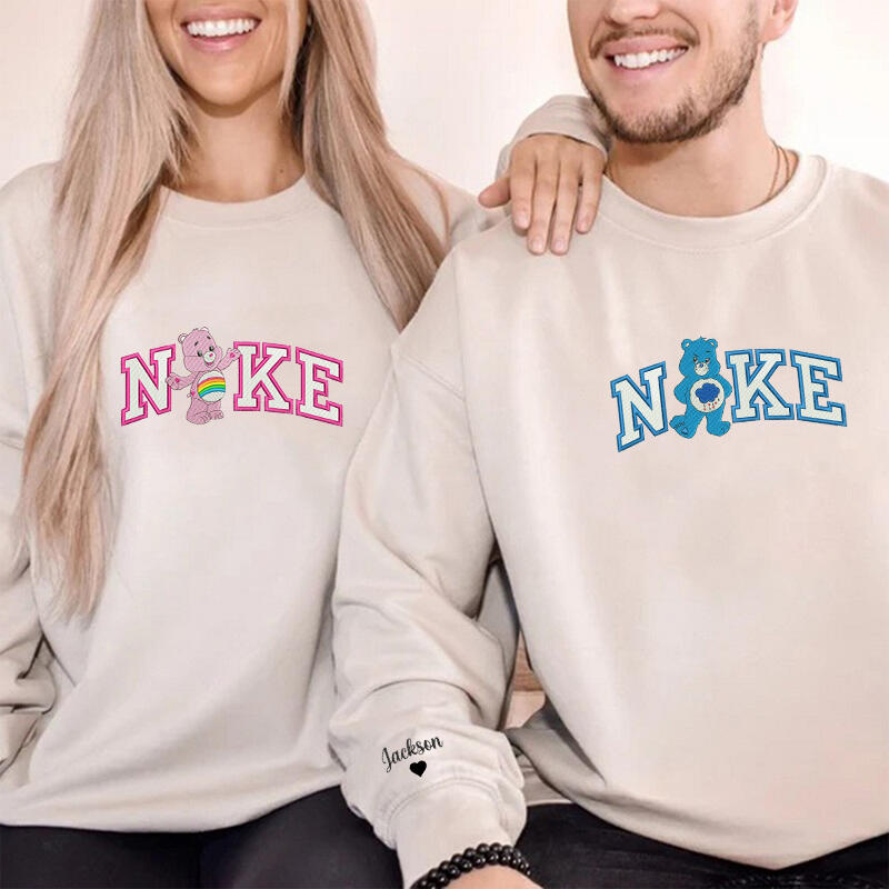 Personalized Sweatshirt Embroidery Cute Bear Couple Design Adorable Gift for Lovers