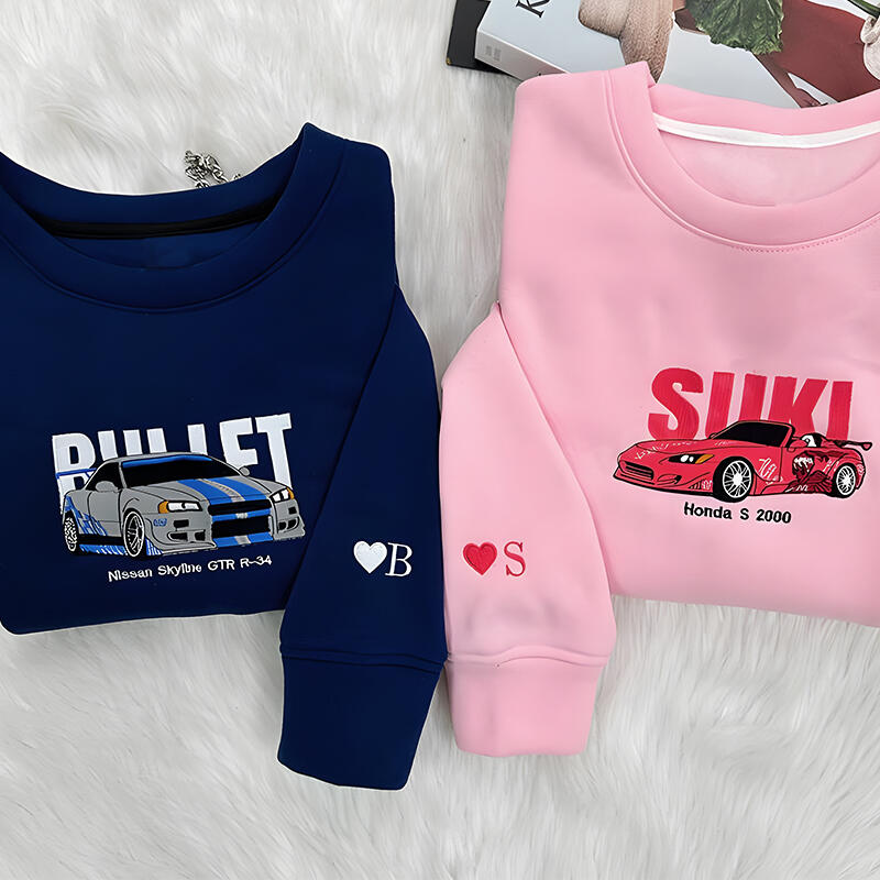 Personalized Sweatshirt Embroidery Fast And Furious Custom Cool Car Design Gift for Couple