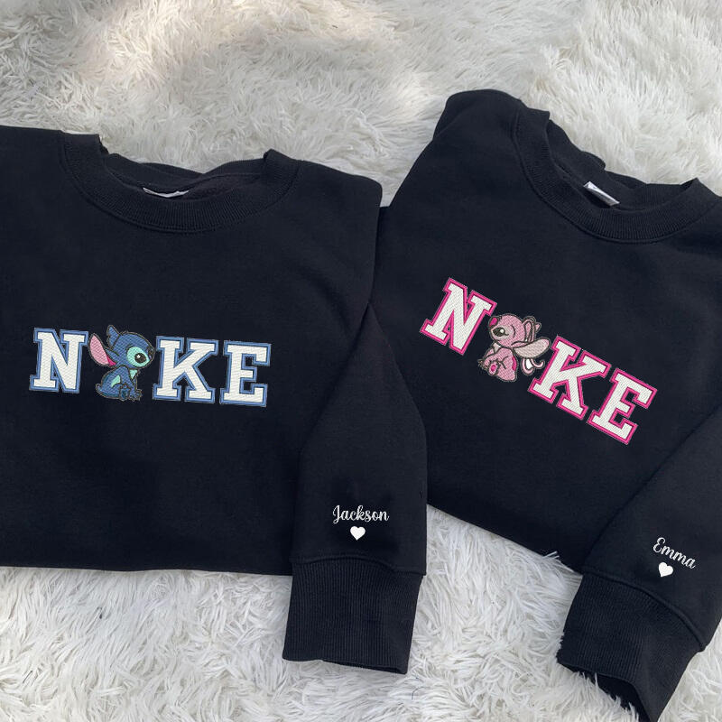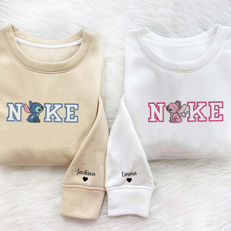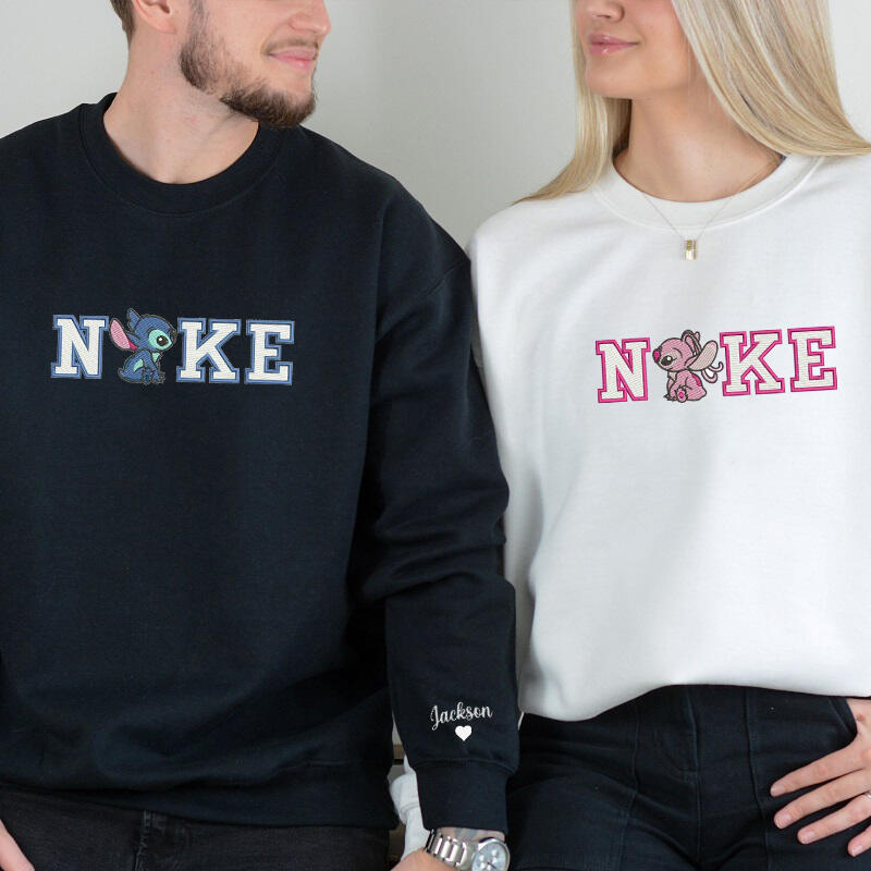 Personalized Sweatshirt Embroidery Sitting Stitch and Angel Couple Design Attractive Gift for Lover