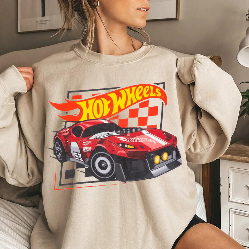Personalized Sweatshirt Hot Wheels Red Cool Racing Car Pattern Design Perfect Gift for Car Lovers