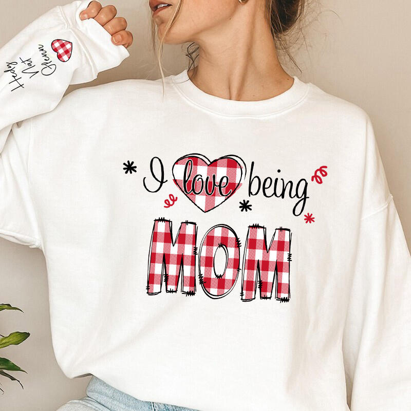 Personalized Sweatshirt I Love Being Mom Chic Plaid Pattern Design Attractive Mother's Day Gift