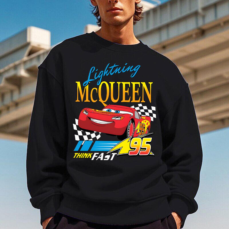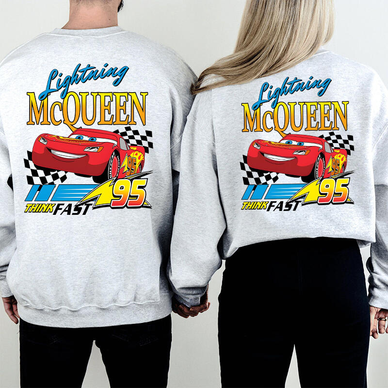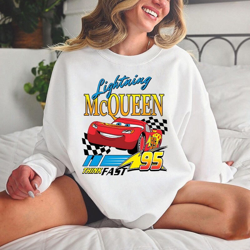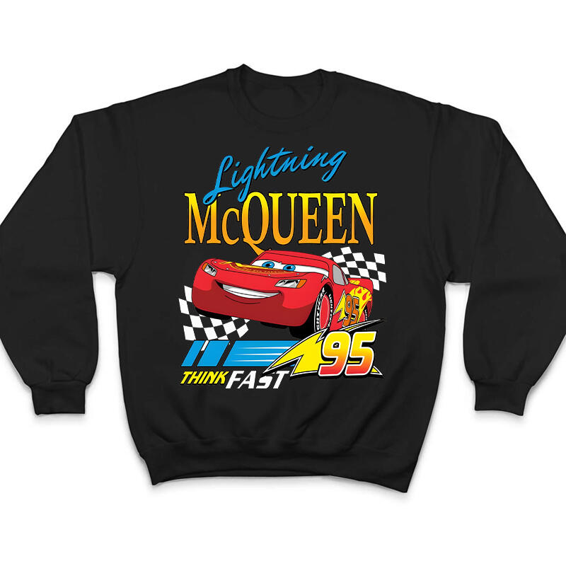 Personalized Sweatshirt Lightning McQueen Think Fast Colorful Pattern Design Cool Gift for Car Lovers