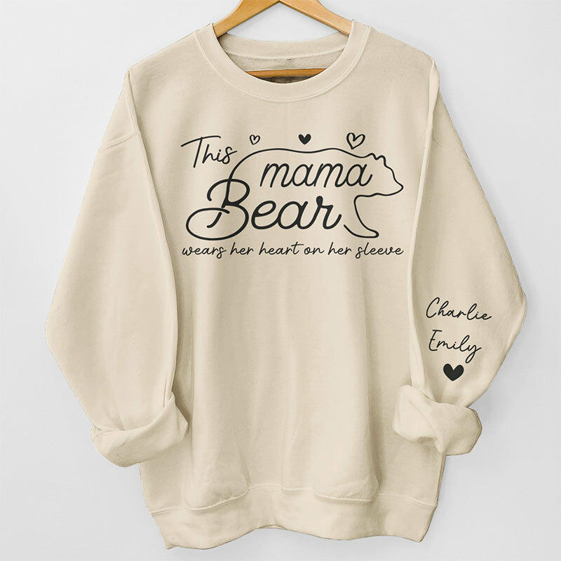 Personalized Sweatshirt Mama Bear Wears Her Heart On Her Sleeve Adorable Gift for Mother's Day
