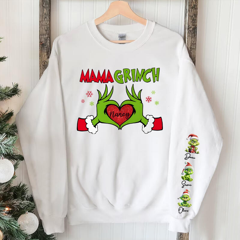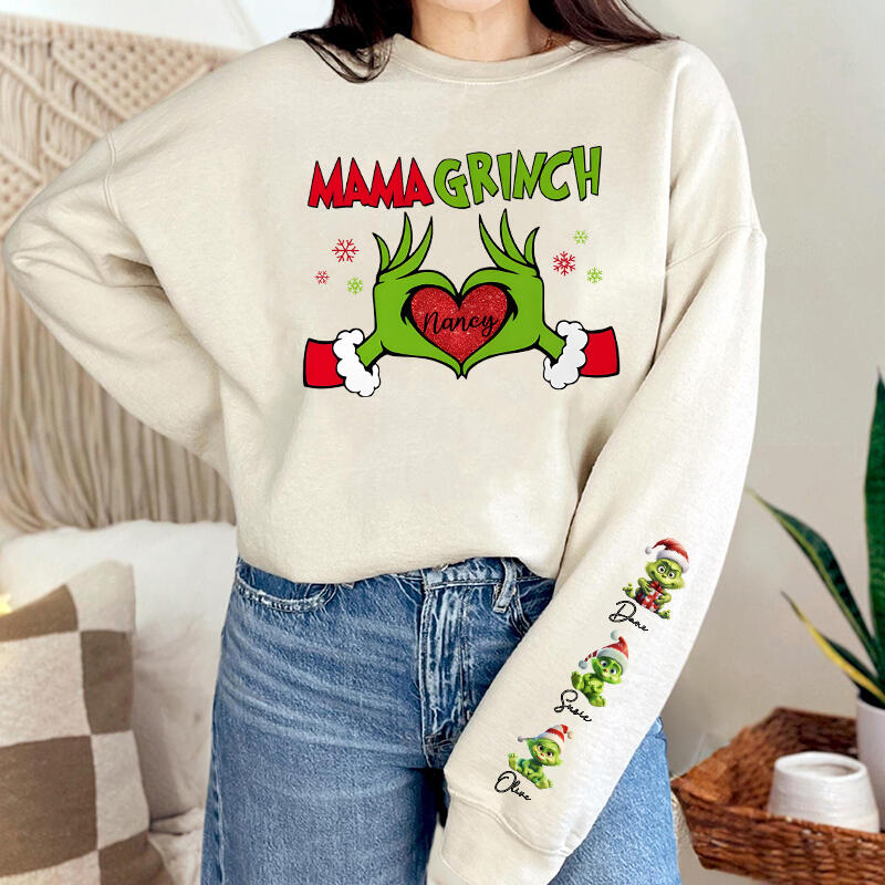 Personalized Sweatshirt Mama Hand Heart Custom Kids Design Creative Christmas Gift for Family