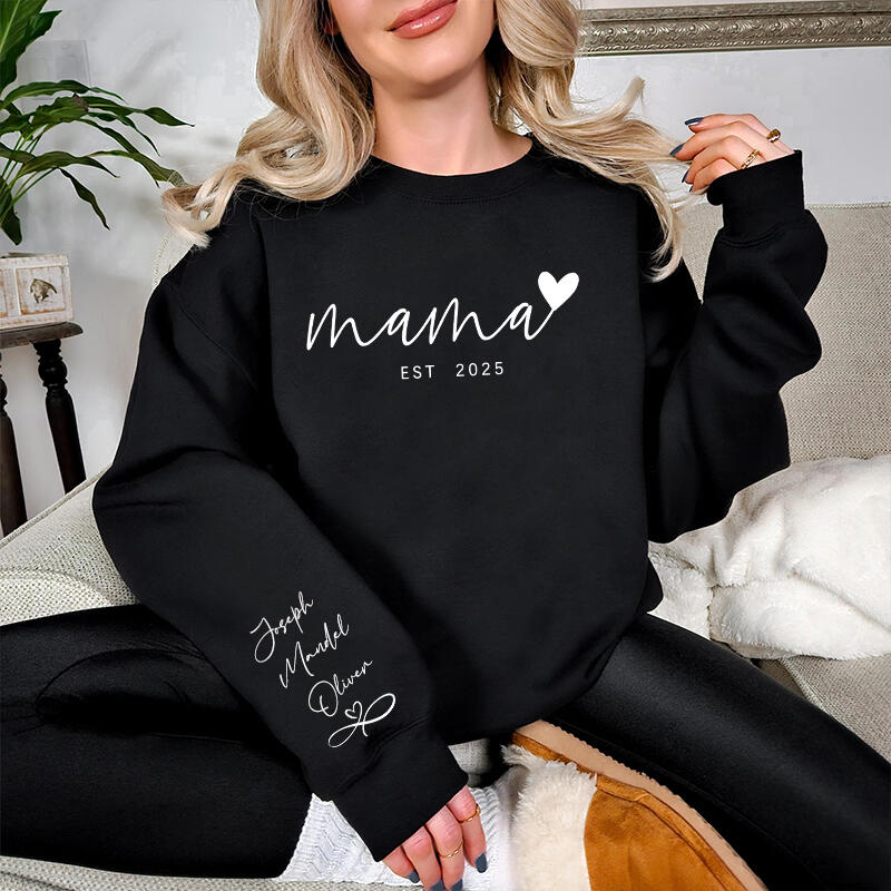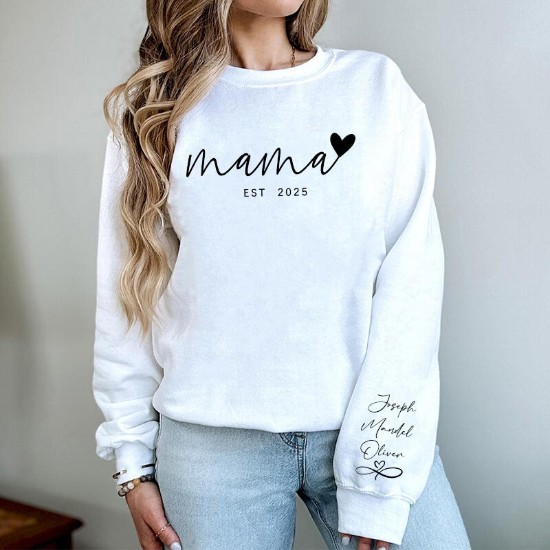 Personalized Sweatshirt Mama Heart Custom Names On The Sleeve Design Perfect Gift for Mother's Day