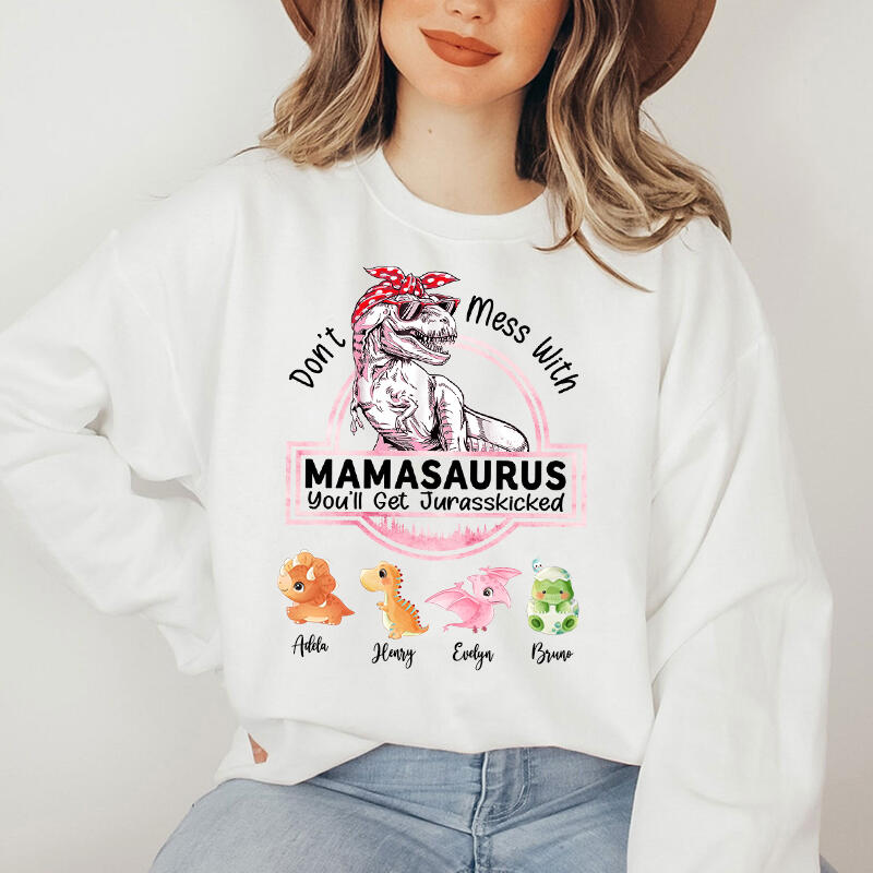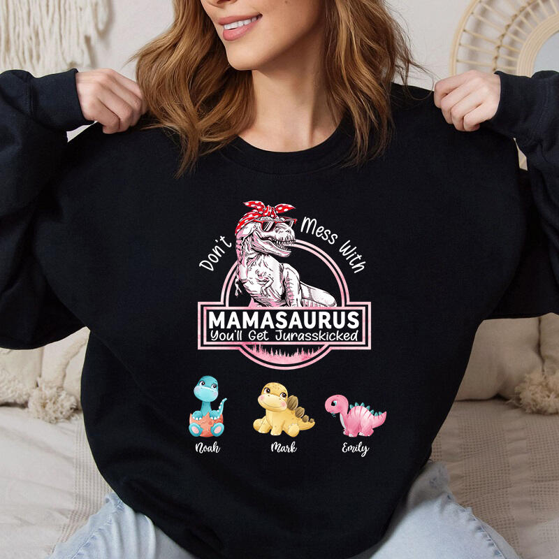 Personalized Sweatshirt Mamasaurus with Optional Cartoon Dinosaurs Pattern Creative Mother's Day Gift