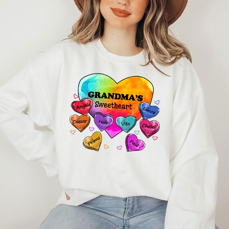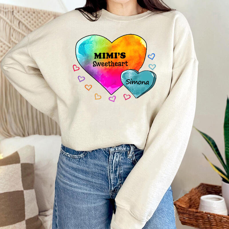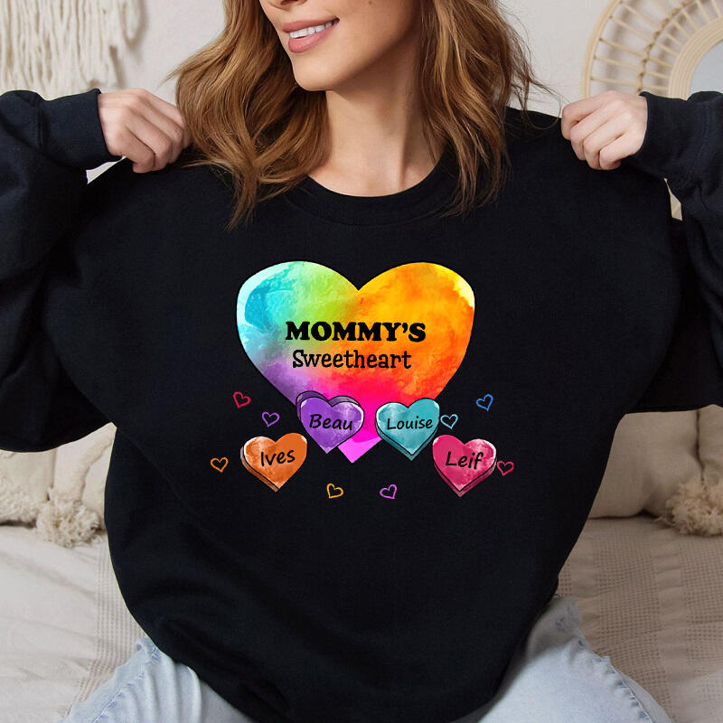 Personalized Sweatshirt Mom's Sweetheart Custom Kids Name Colorful Heart Design Gift for Mother's Day