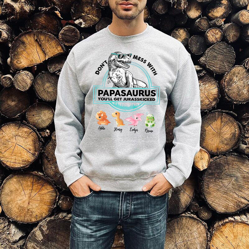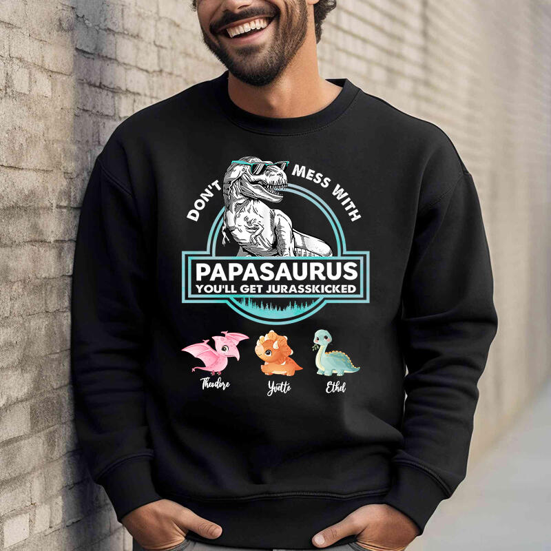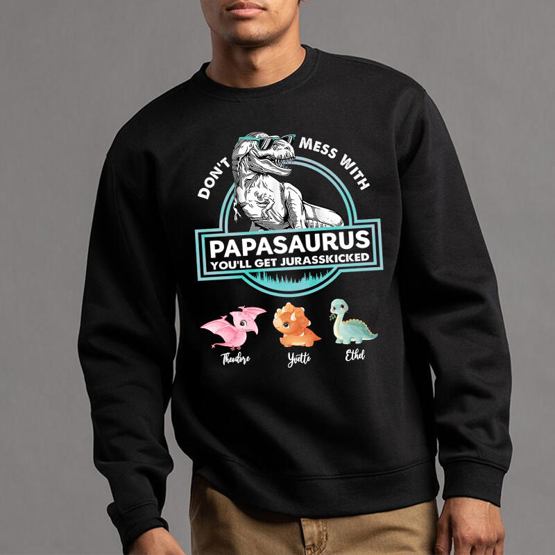 Personalized Sweatshirt Papasaurus Custom Baby Dinosaurs Pattern Design Perfect Father's Day Gift