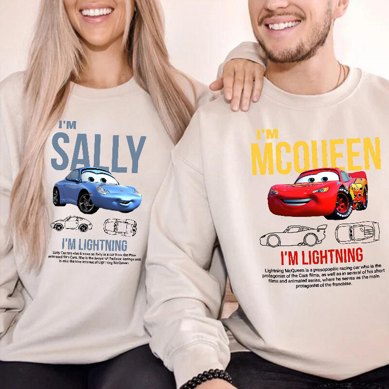 Personalized Sweatshirt Racing Cars Couple Cartoon Design Attractive Valentine's Day Gift for Loved One