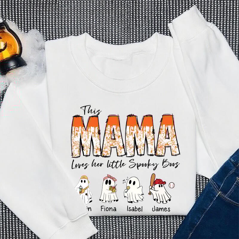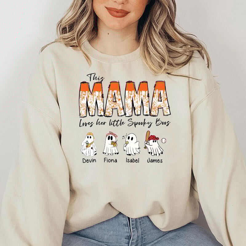Personalized Sweatshirt This Mama Loves Her Little Spooky Boos Custom Kids Names Cute Halloween Gift for Dear Mom