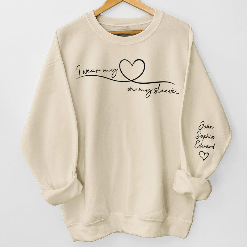 Personalized Sweatshirt Wear My Heart On My Sleeve with Custom Names Perfect Gift for Mother's Day