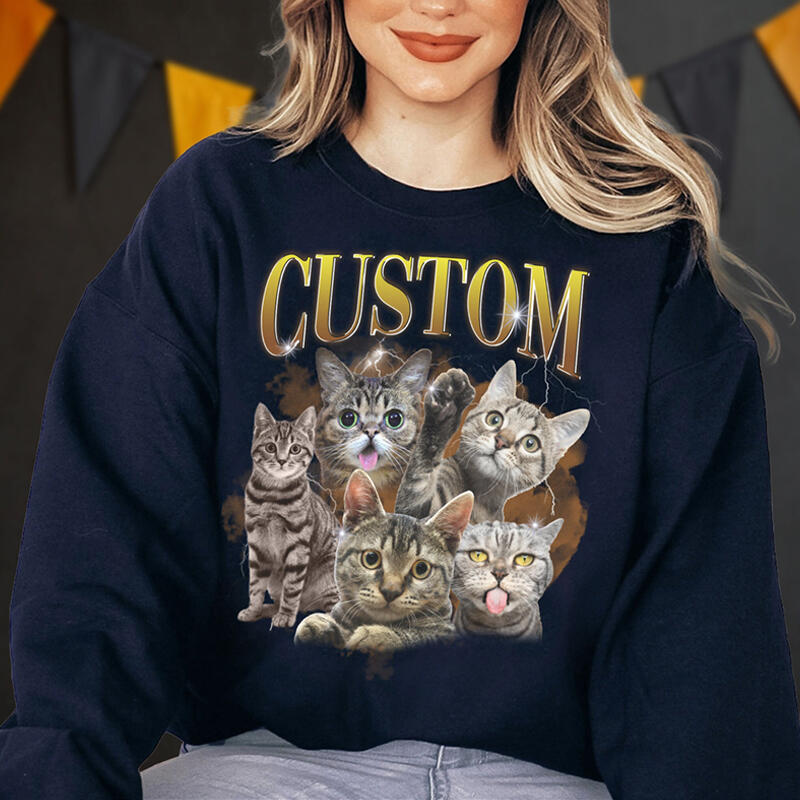 Personalized Sweatshirt with Custom Photos Retro Style Vintage Design for Pet Lovers