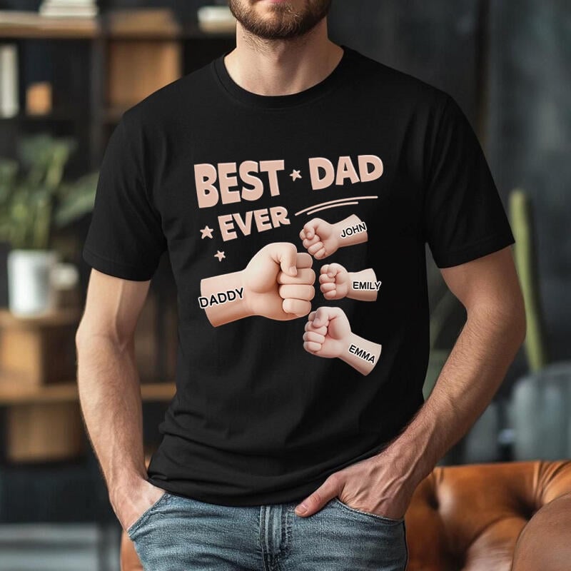 Personalized T-shirt Best Dad Ever Cute Fist Bump Design Attractive Gift for Father's Day