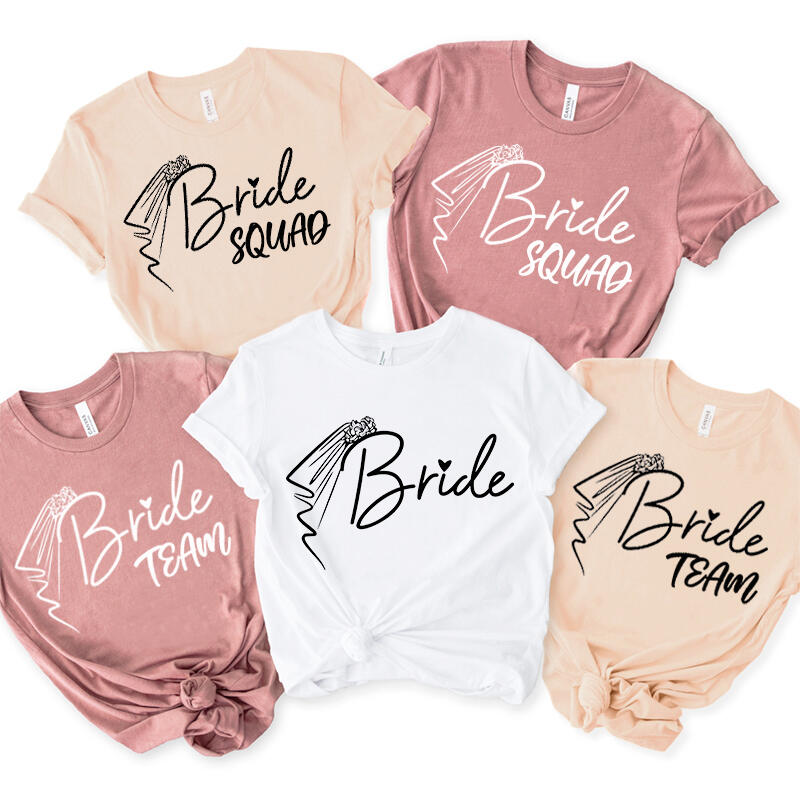 Personalized T-shirt Bride Squad with Wedding Veil Design Creative Pretty Hen Party Gift