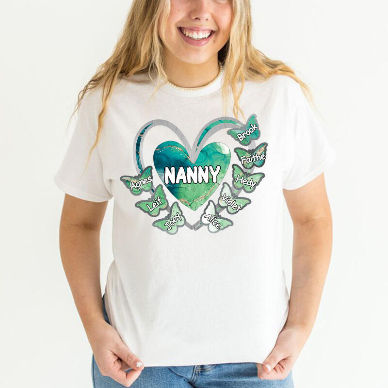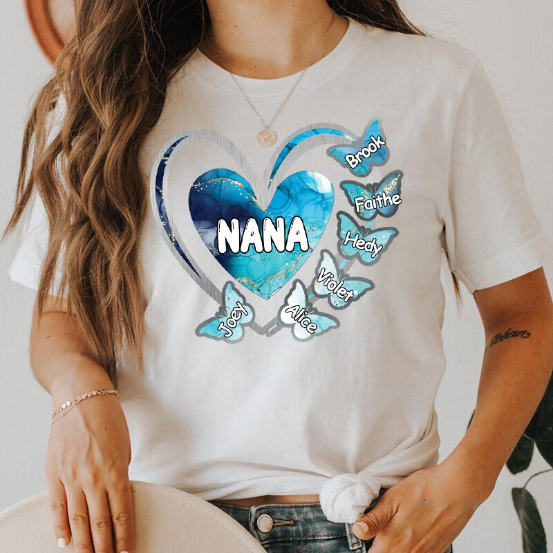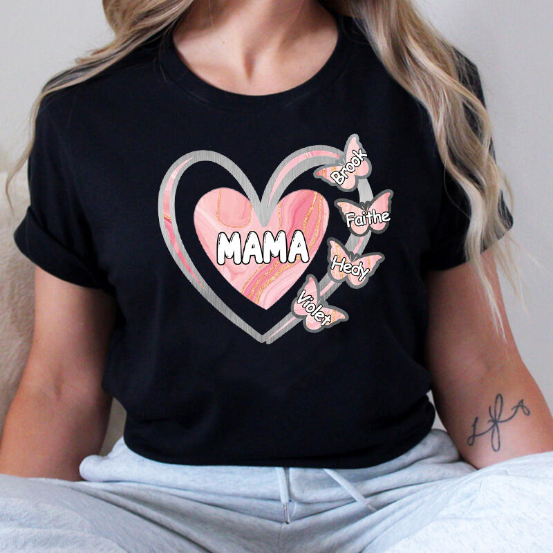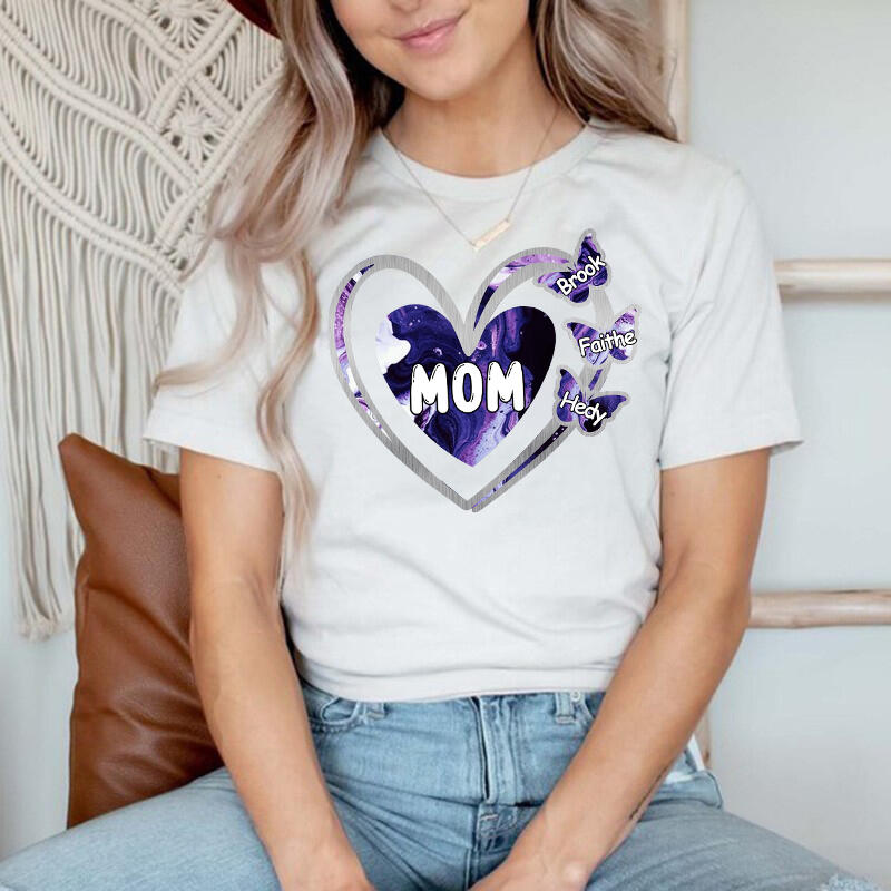 Personalized T-shirt Custom Colorful Glitter Heart Butterfly Kids Design Exquisite Mother's Day Gift