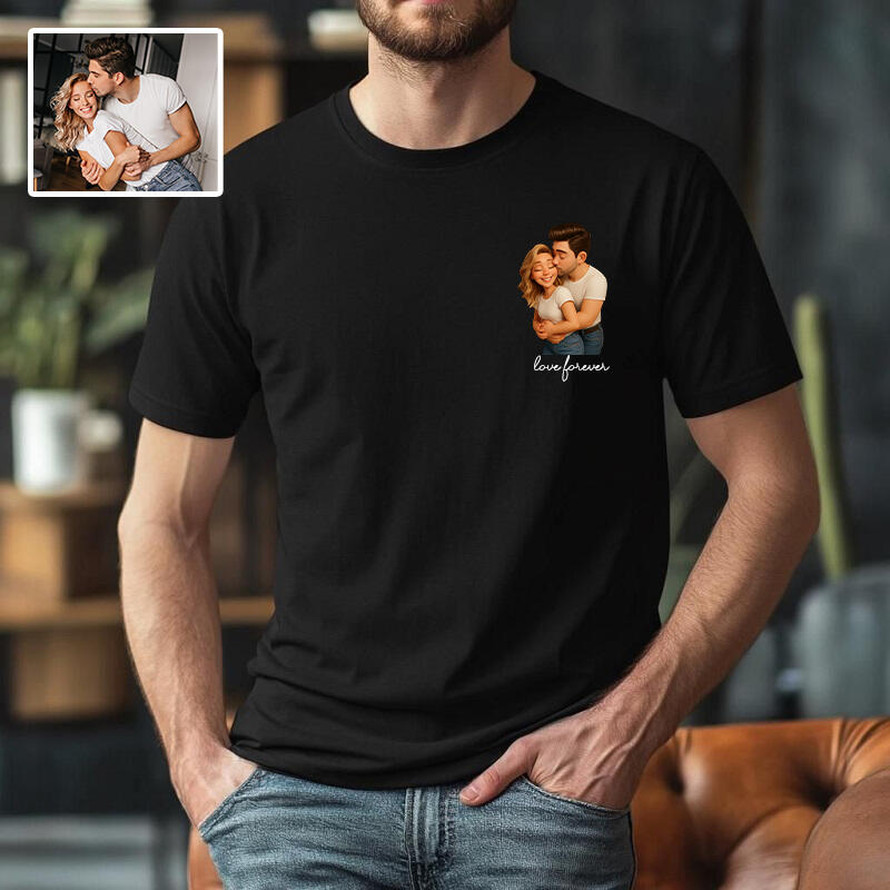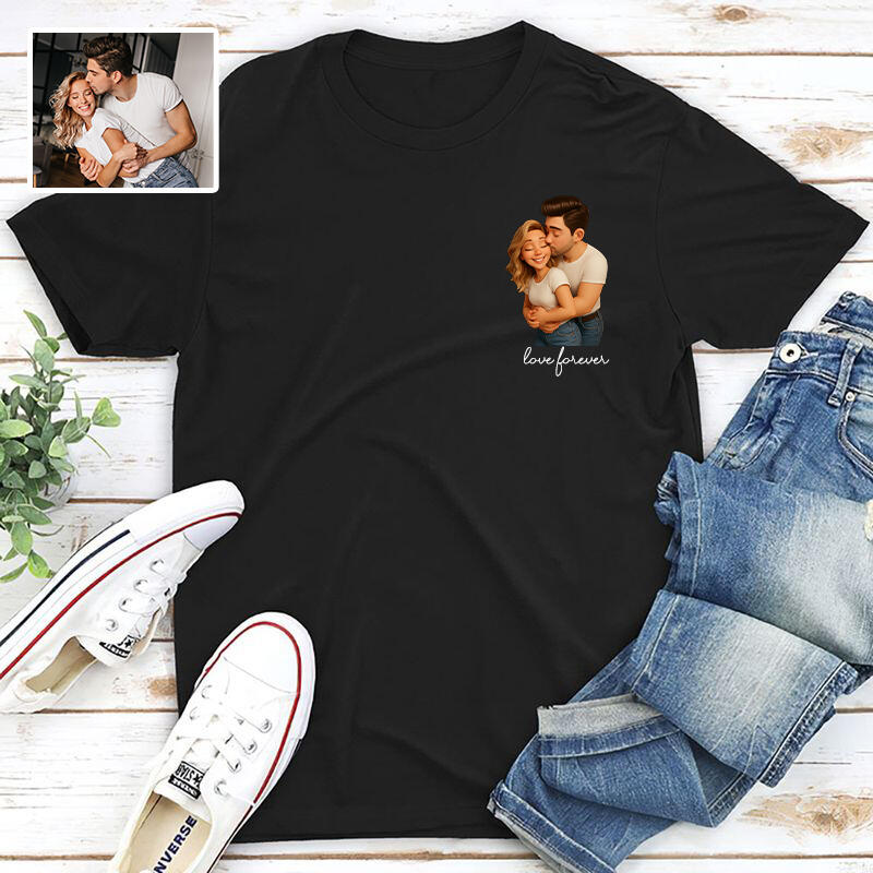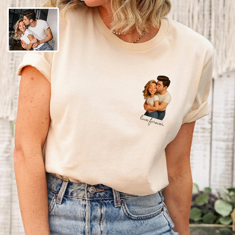 Personalized T-shirt Custom Couple Photo 3D Cartoon Style Design Perfect Gift for Lovers