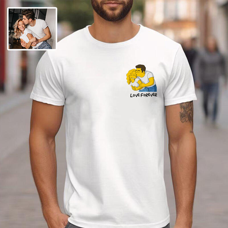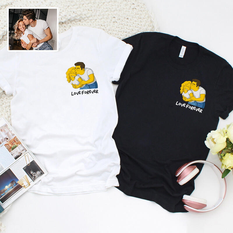Personalized T-shirt Custom Couple Photo Simpson Cartoon Style Design Funny Gift for Lovers